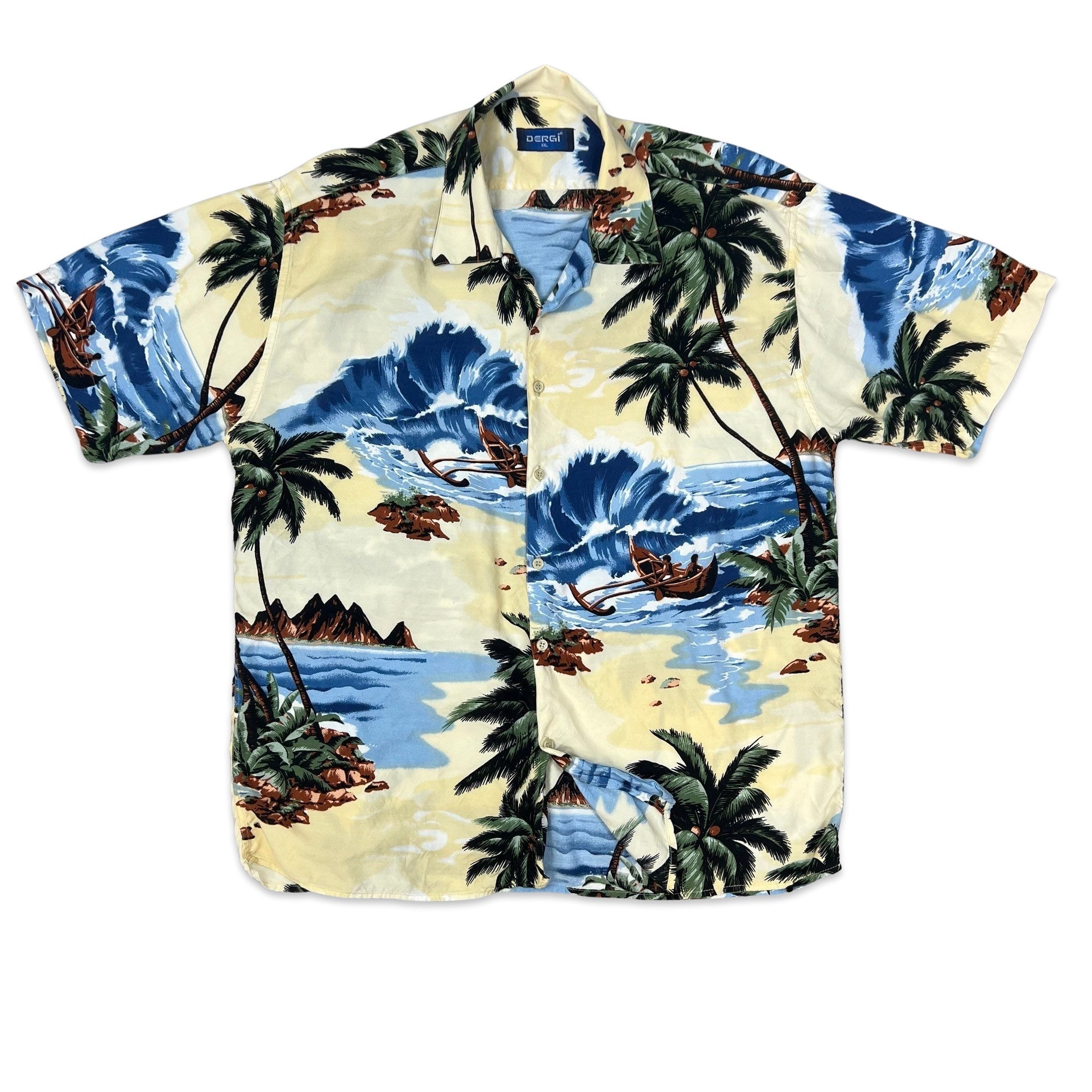 Vintage Hawaiian style shirt with all-over tropical island theme print.