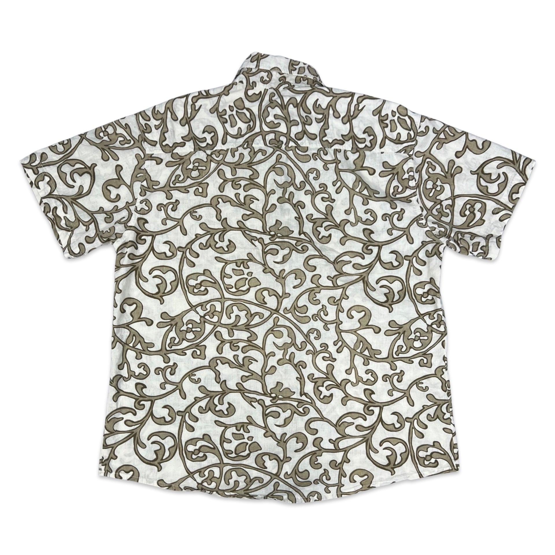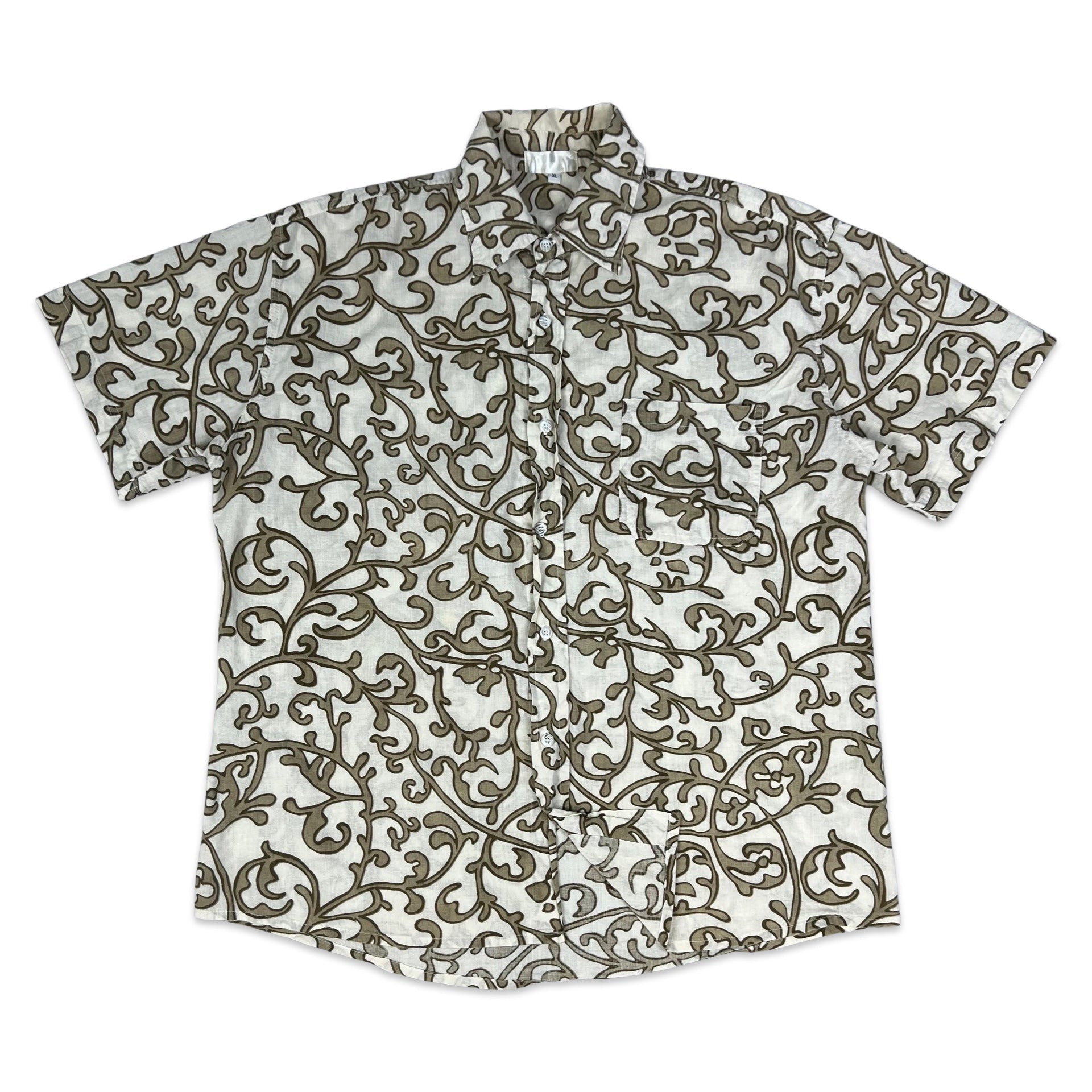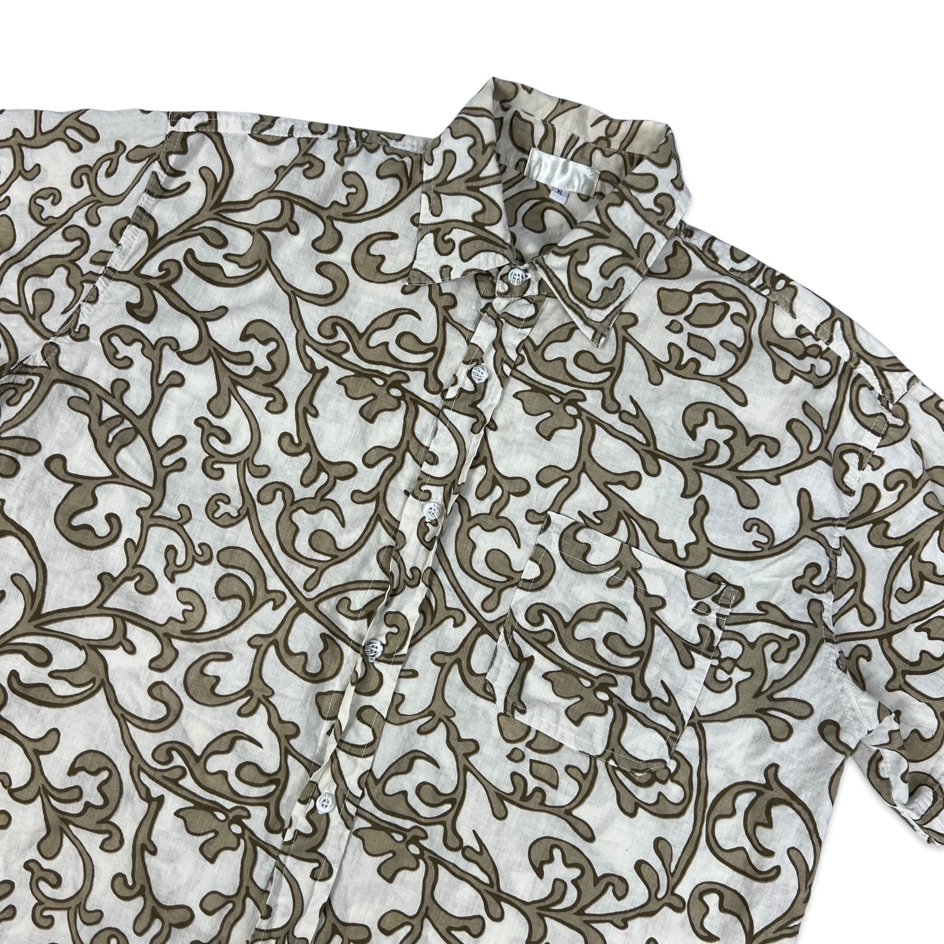 Vintage Beige & Brown Abstract Print Short Sleeve Shirt L XL