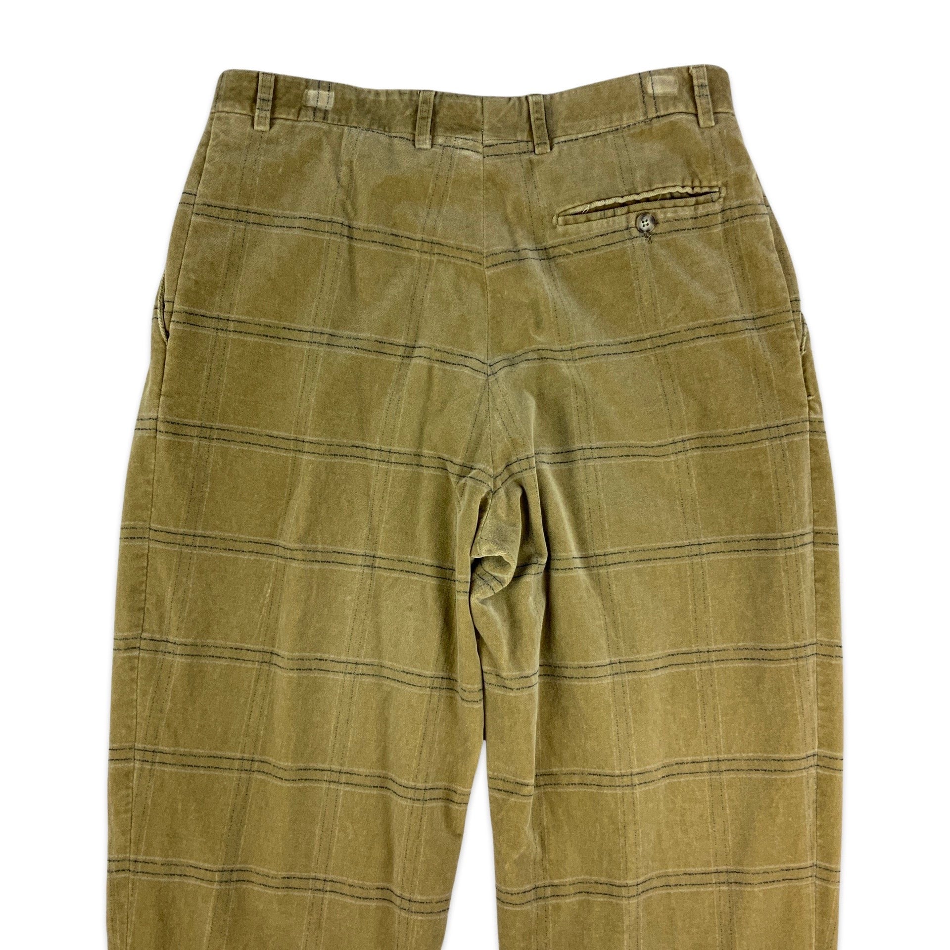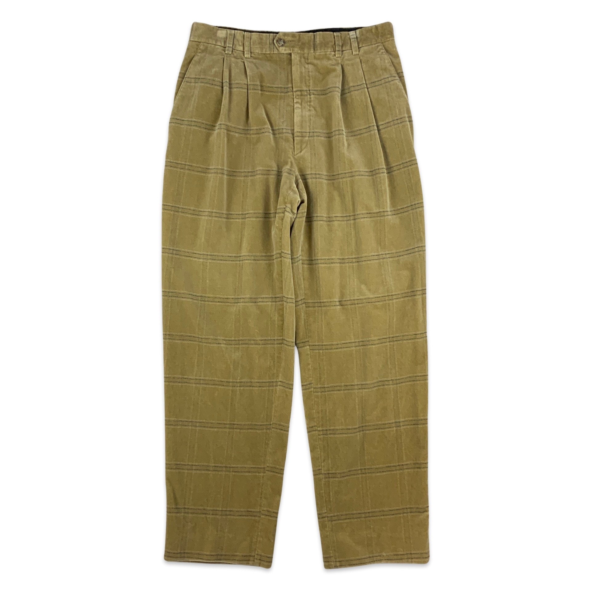 Vintage Beige Checked Velvet Pleated Trousers 33W 31L