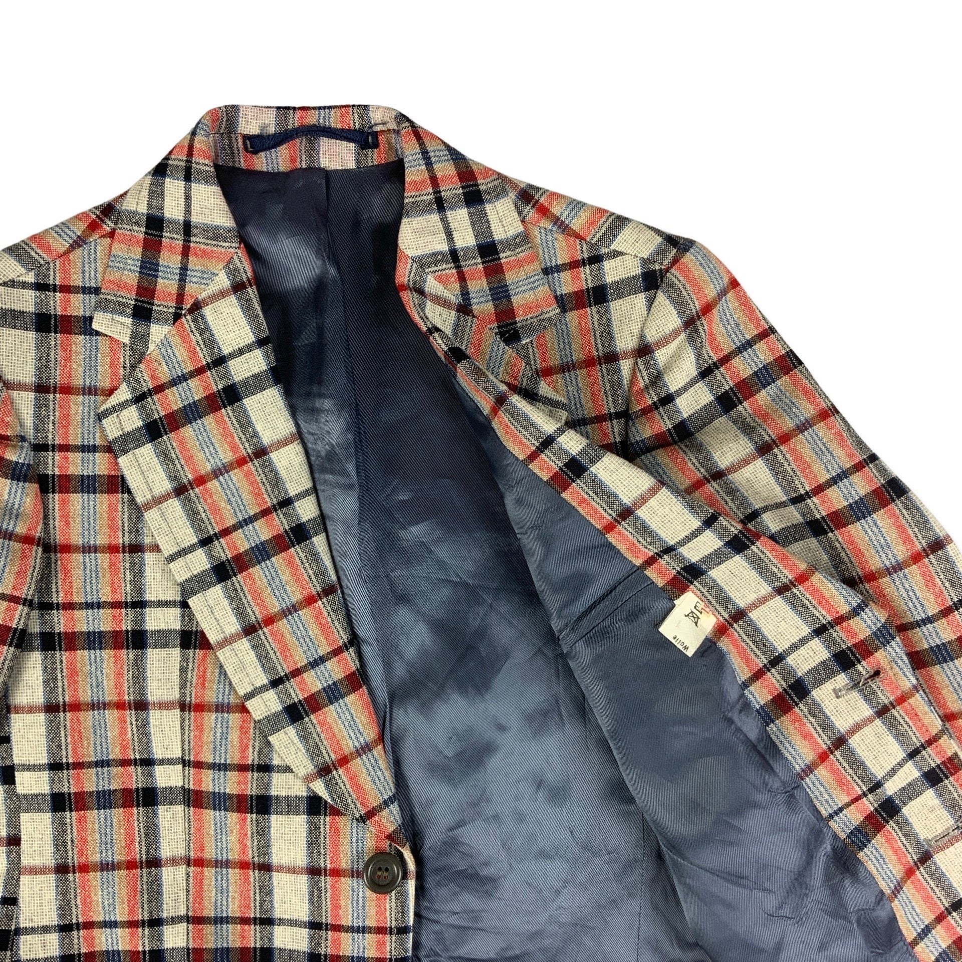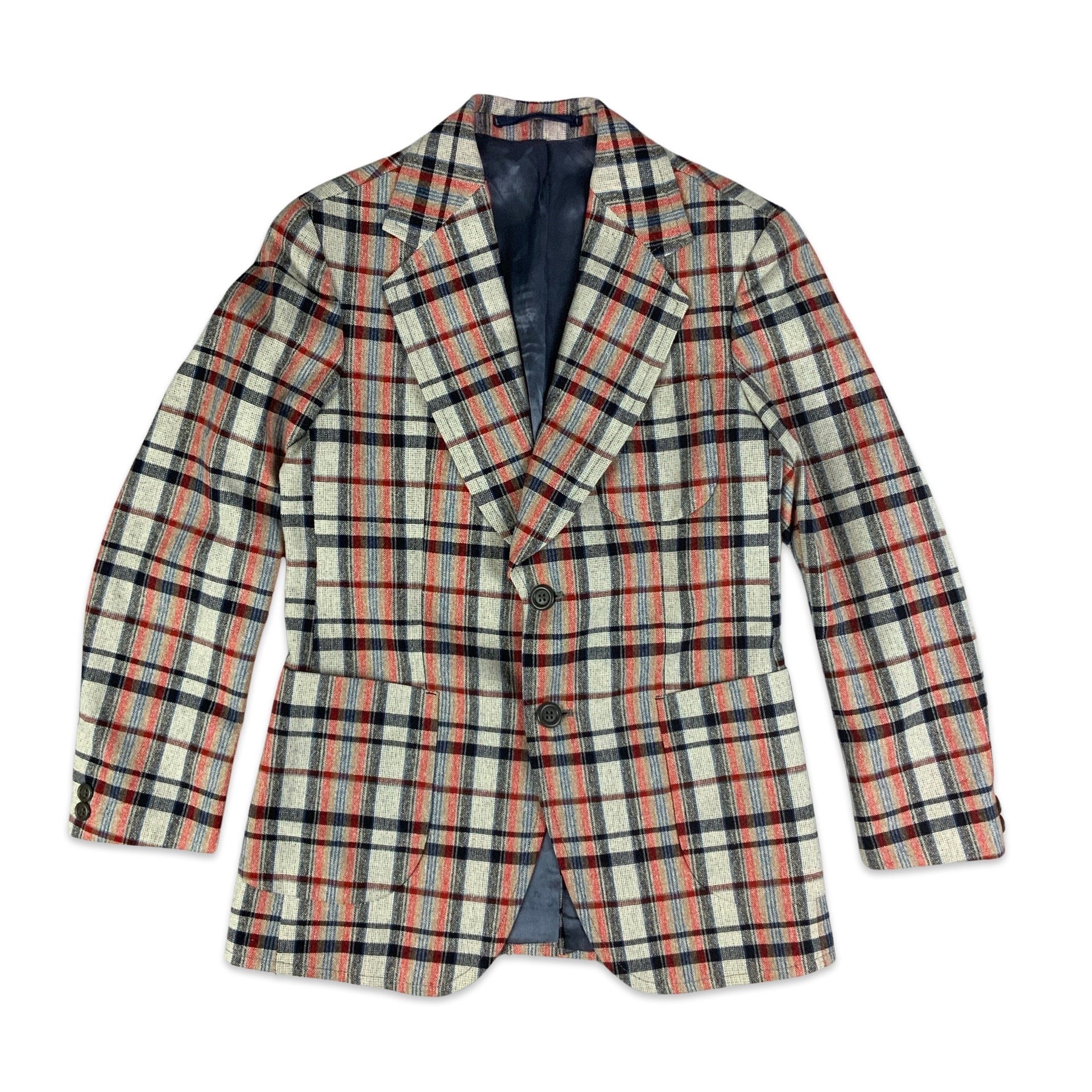 Vintage Beige Red & Navy Plaid Blazer 6 8
