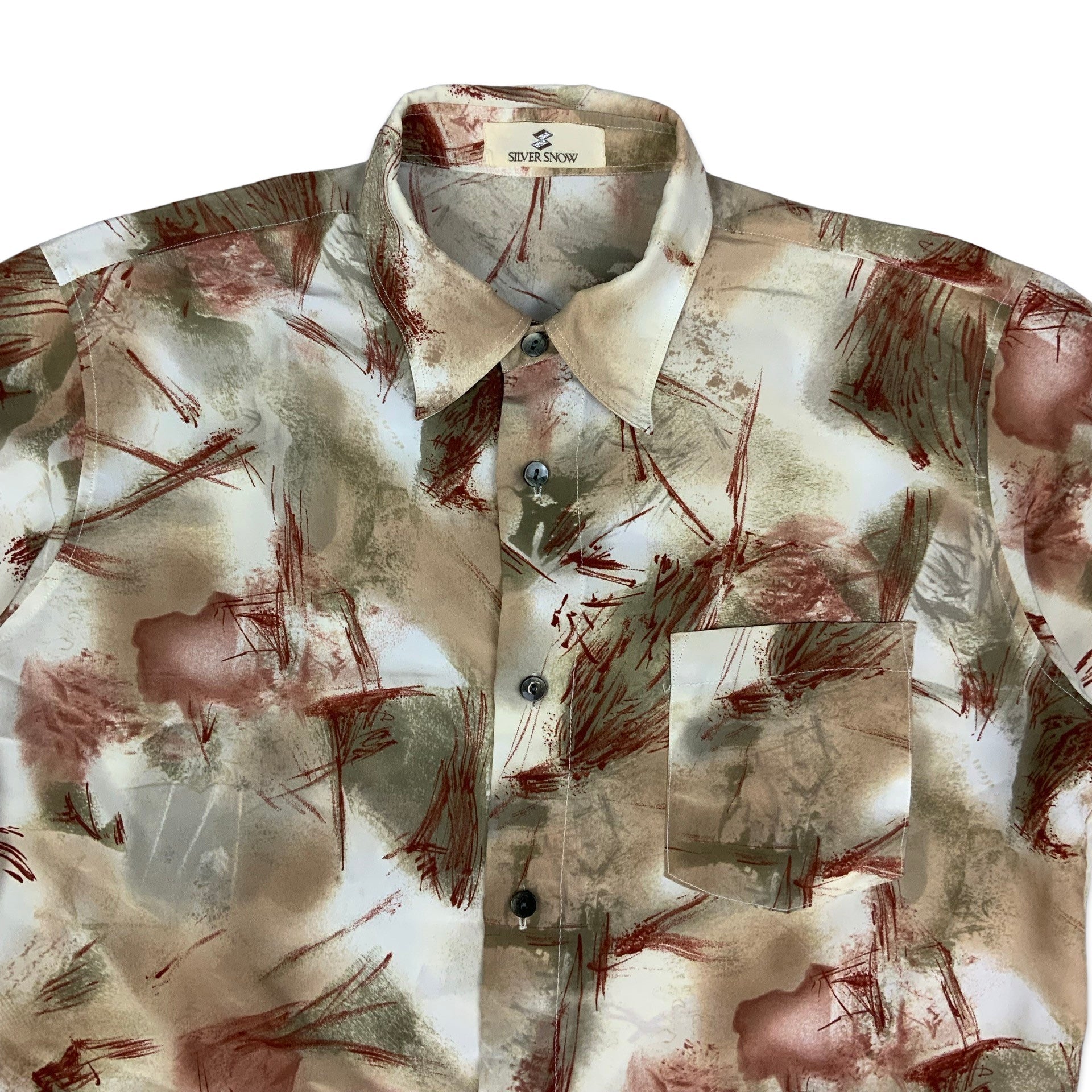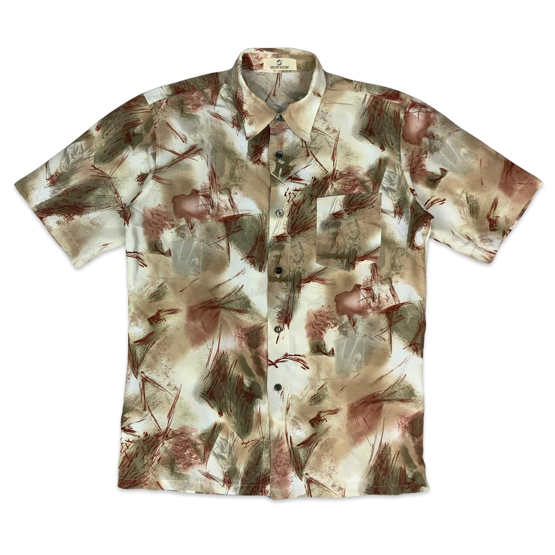 Men’s vintage short sleeve short. Khaki, red, beige colours with black buttons.