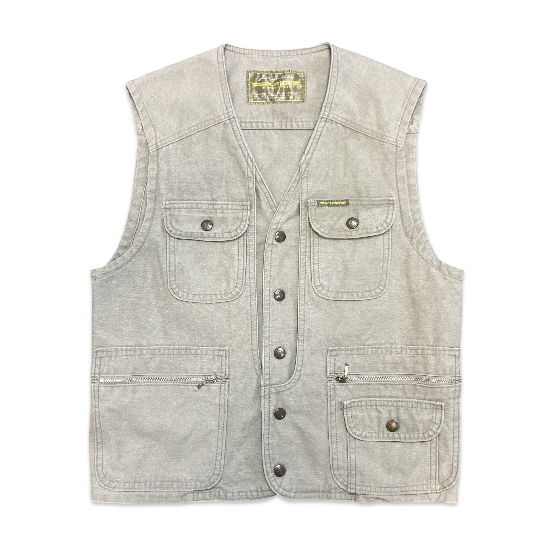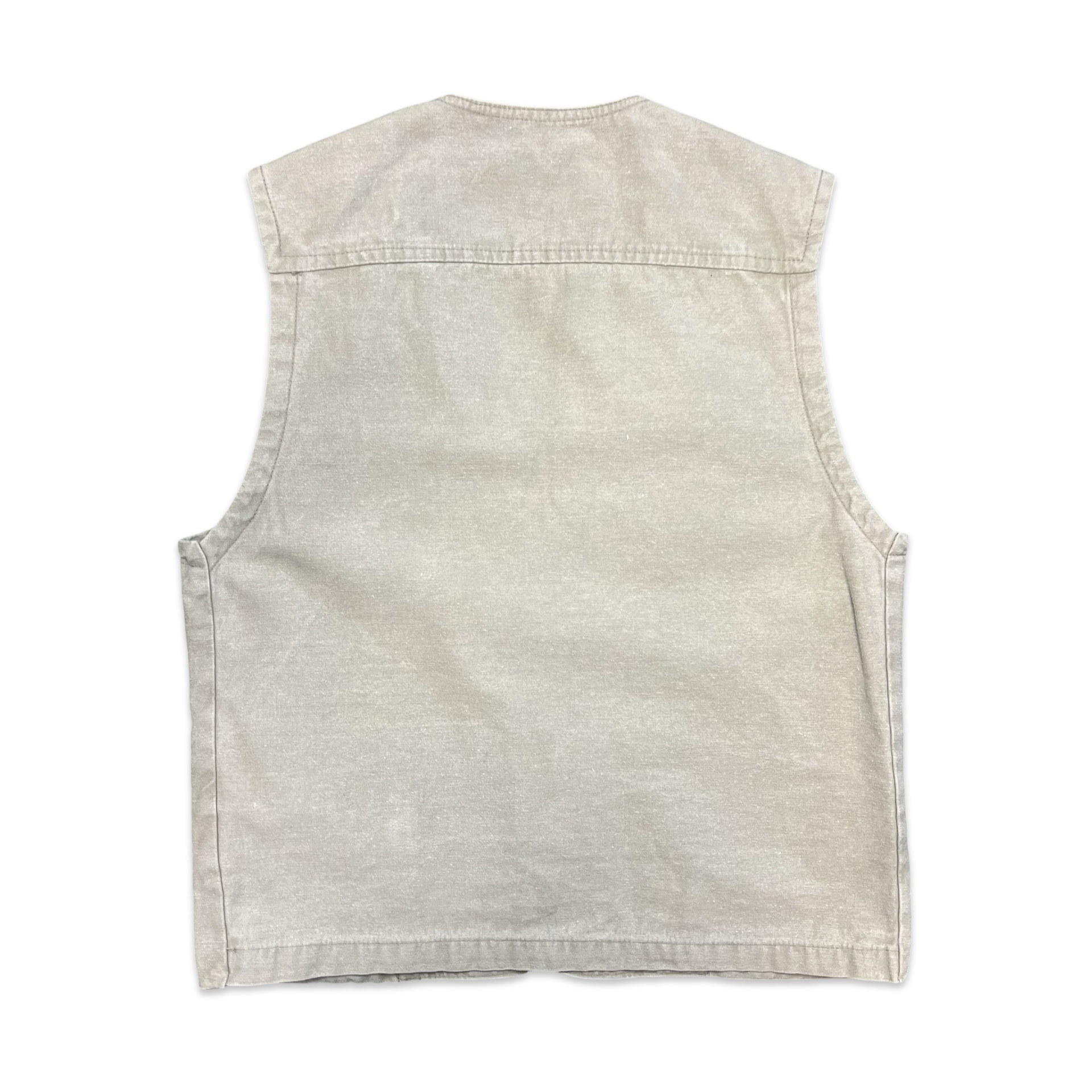 Vintage 90s utility vest in beige canvas with multiple pockets.