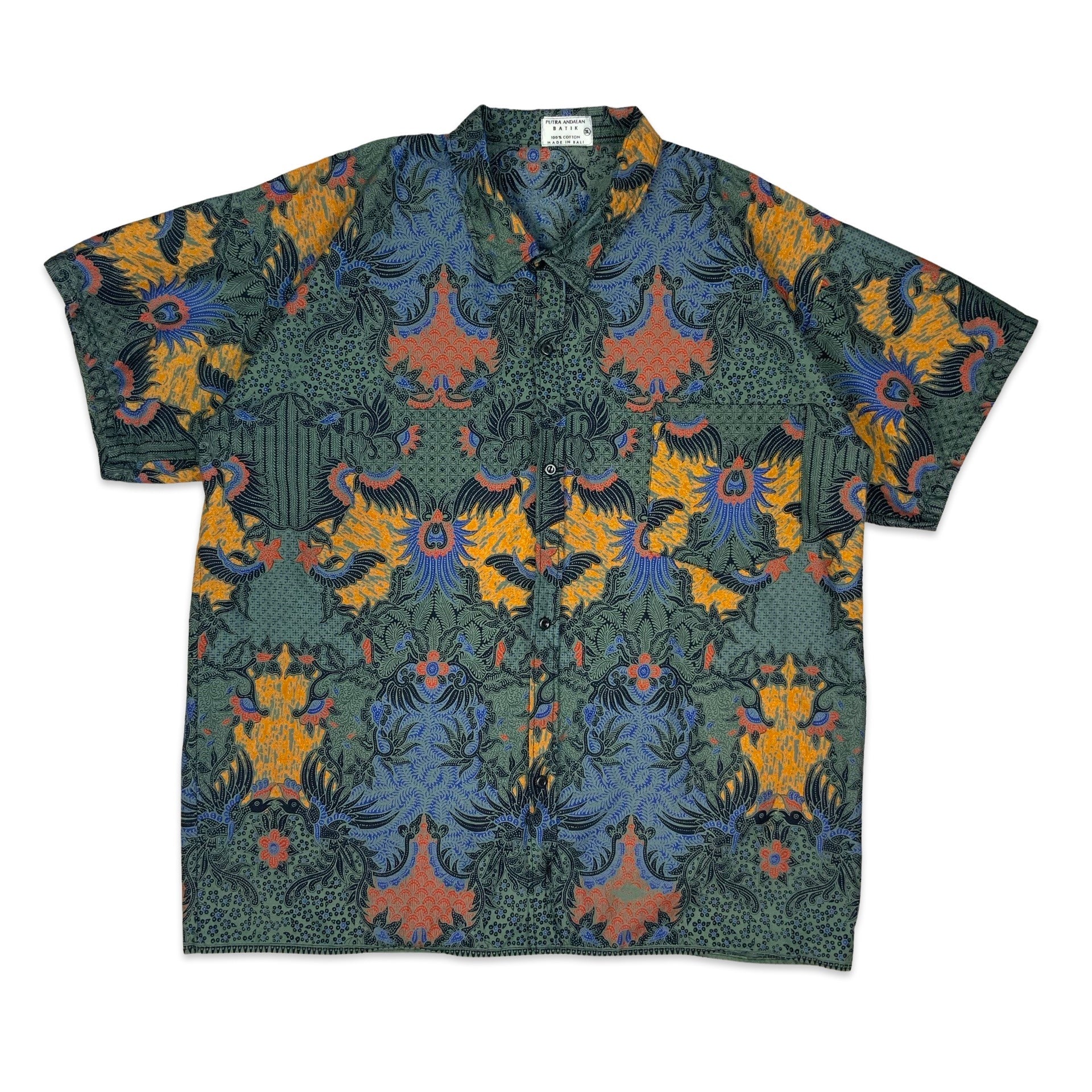 Vintage Black Blue & Orange Paisley Shirt XL