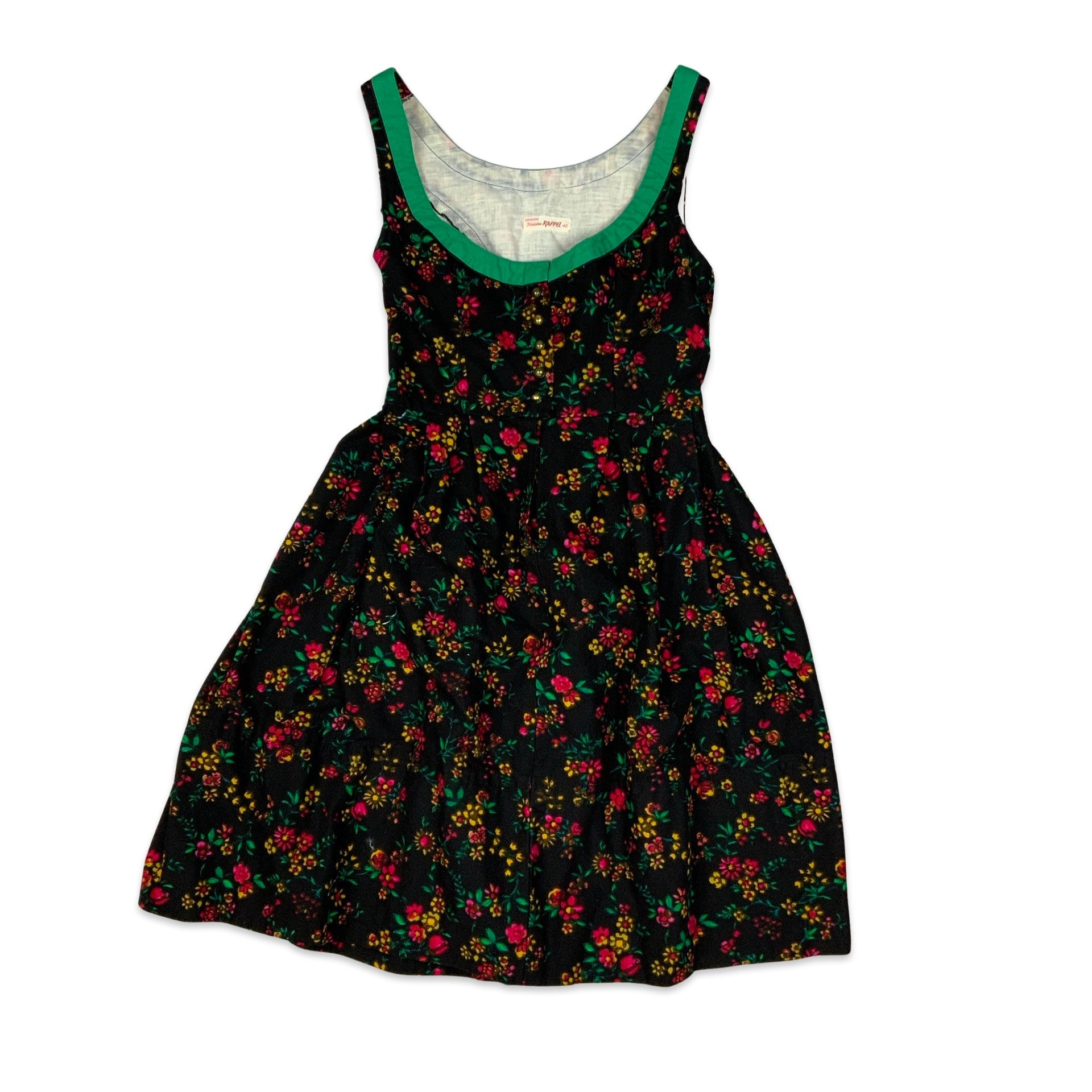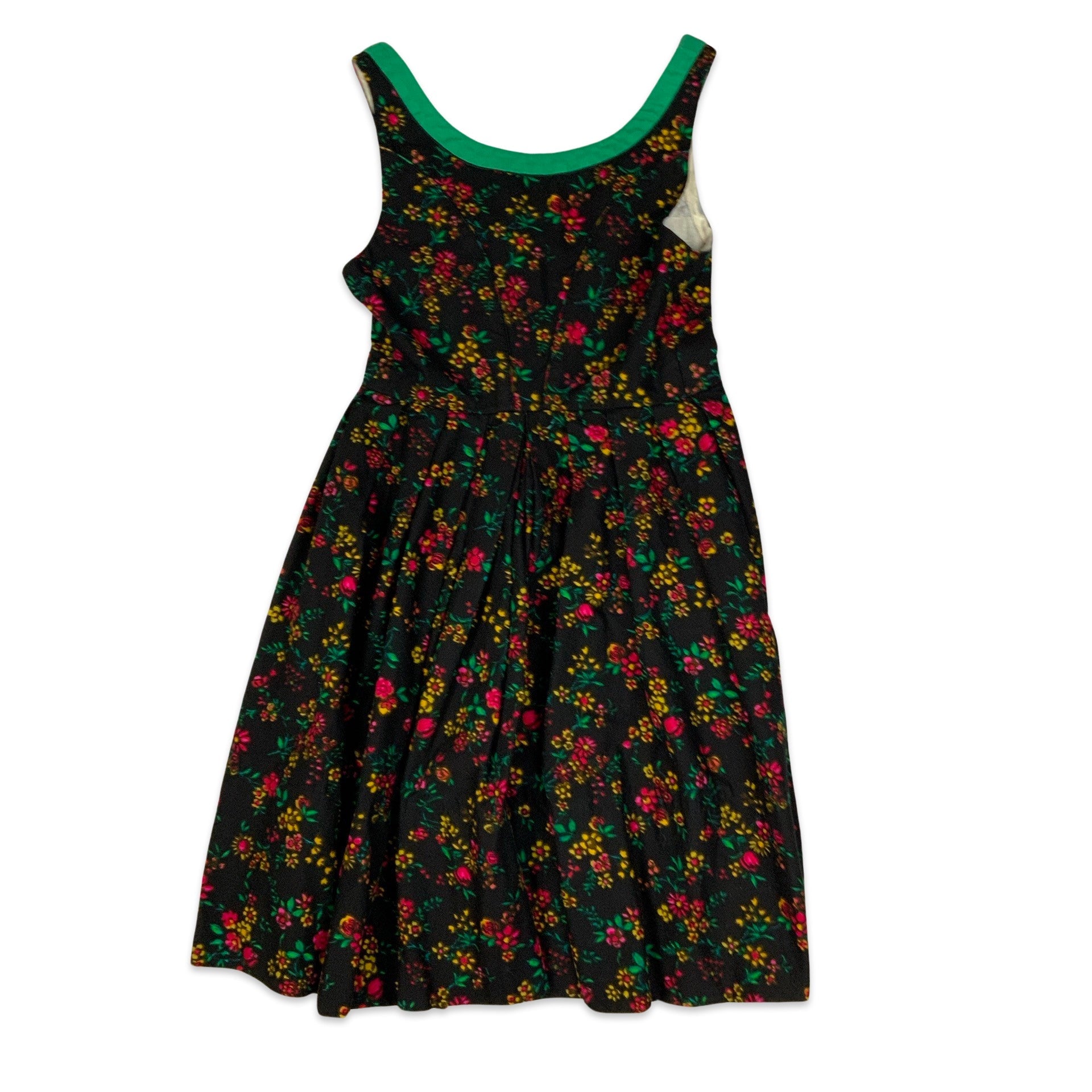 Vintage Black Floral Print Sleeveless Pleated Dress 8