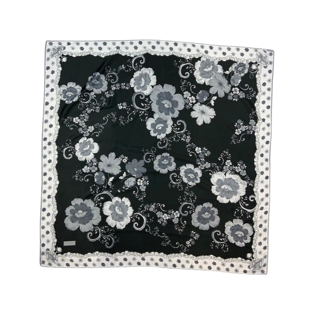 Vintage Black, Grey, and White Floral Silk Scarf