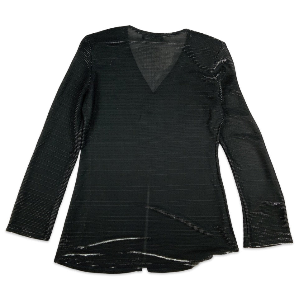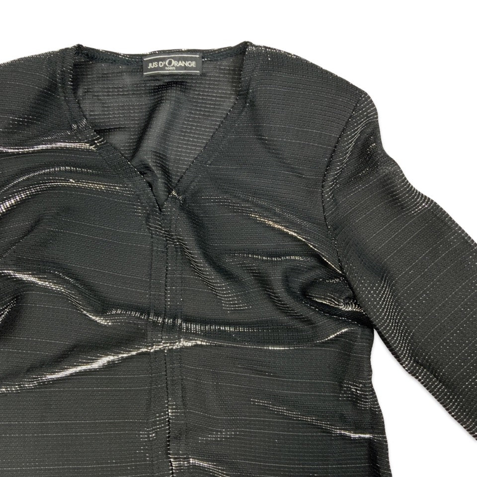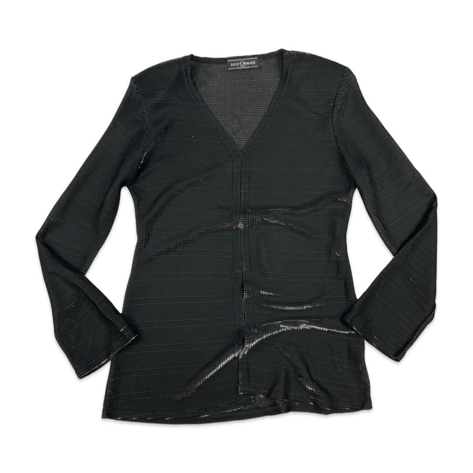 Vintage Black Lurex Long Sleeved Blouse Silver Shimmer 8 10
