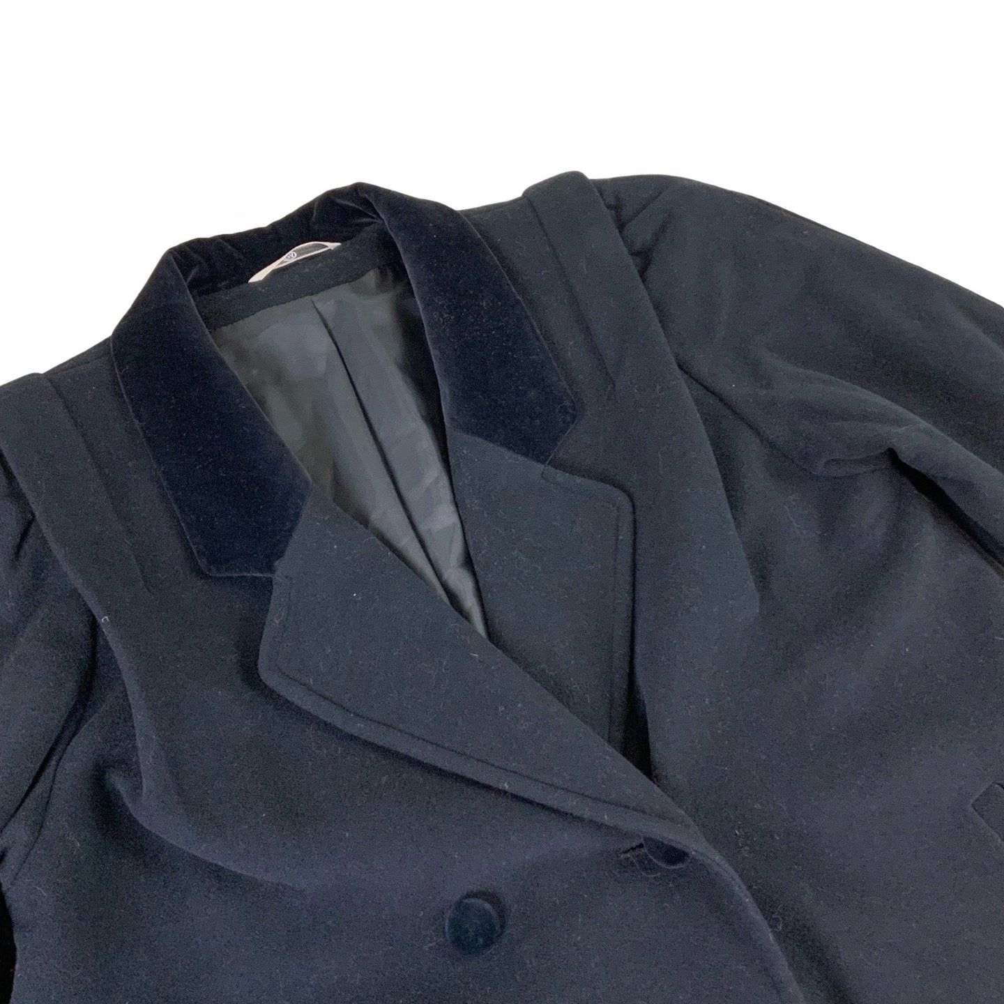 Vintage Black Velvet Collar Trench Coat S M
