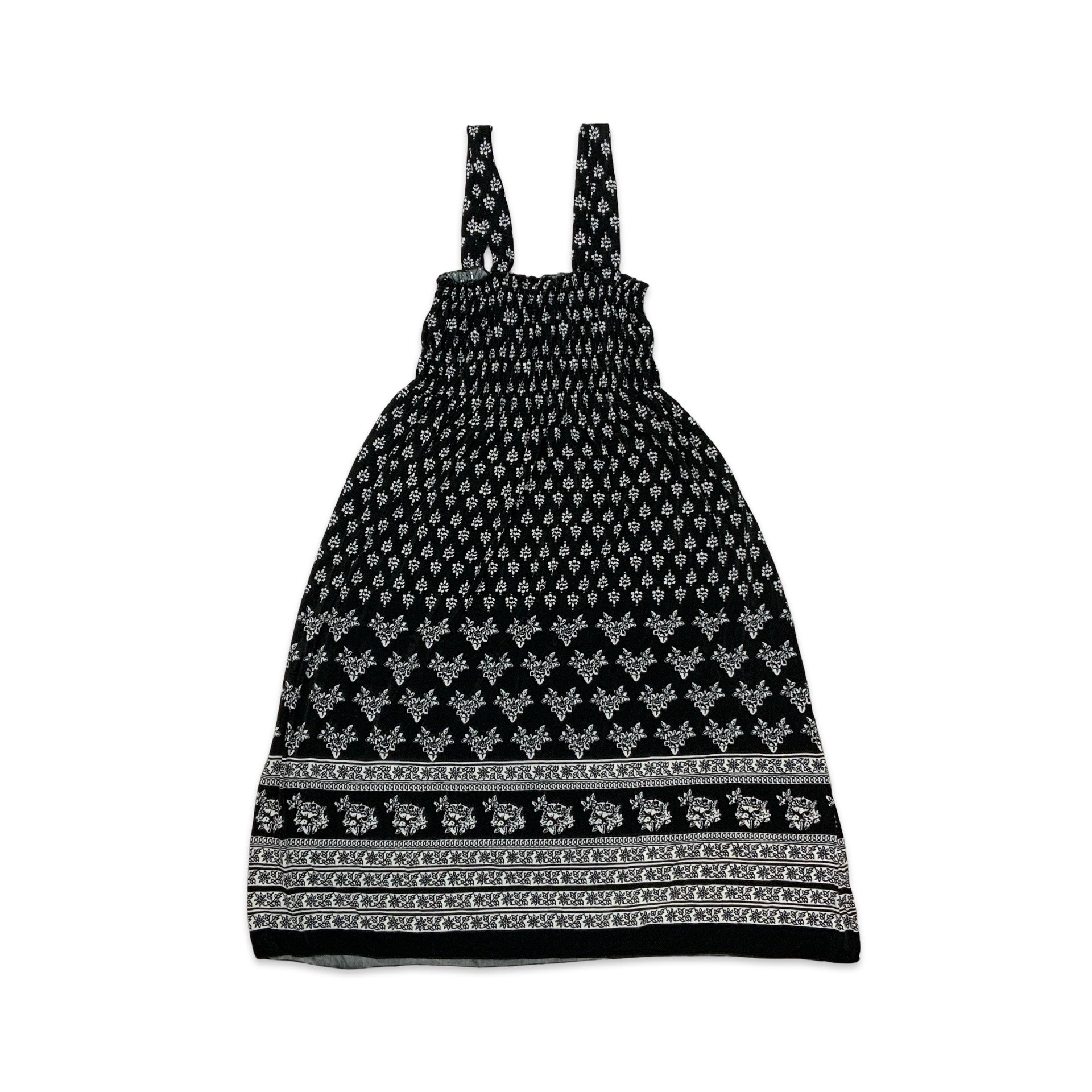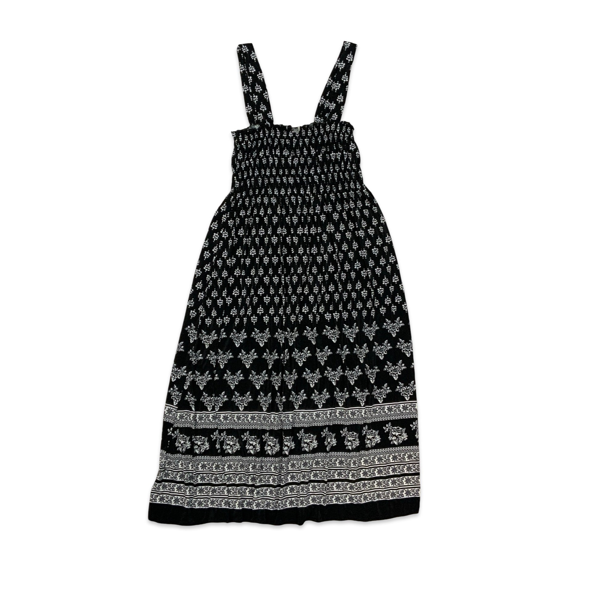 Women’s vintage summer dress. Black & white floral print with elasticated bust.