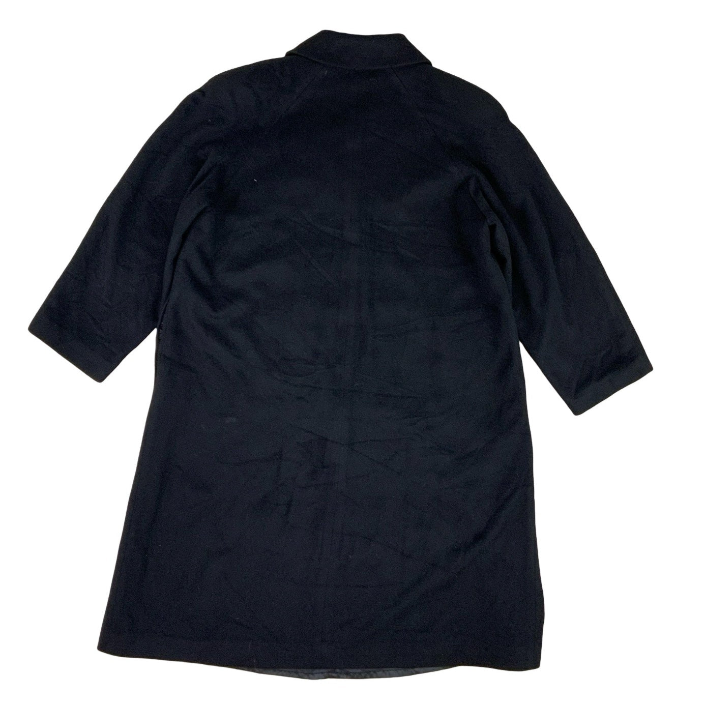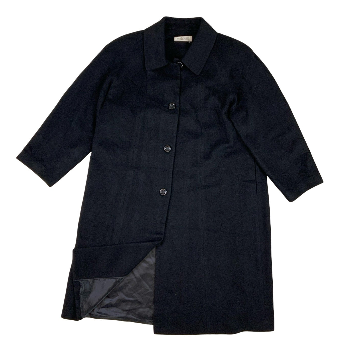 Vintage black trench coat. two front buttoned pockets in black. front button up fastening. 100% wool.