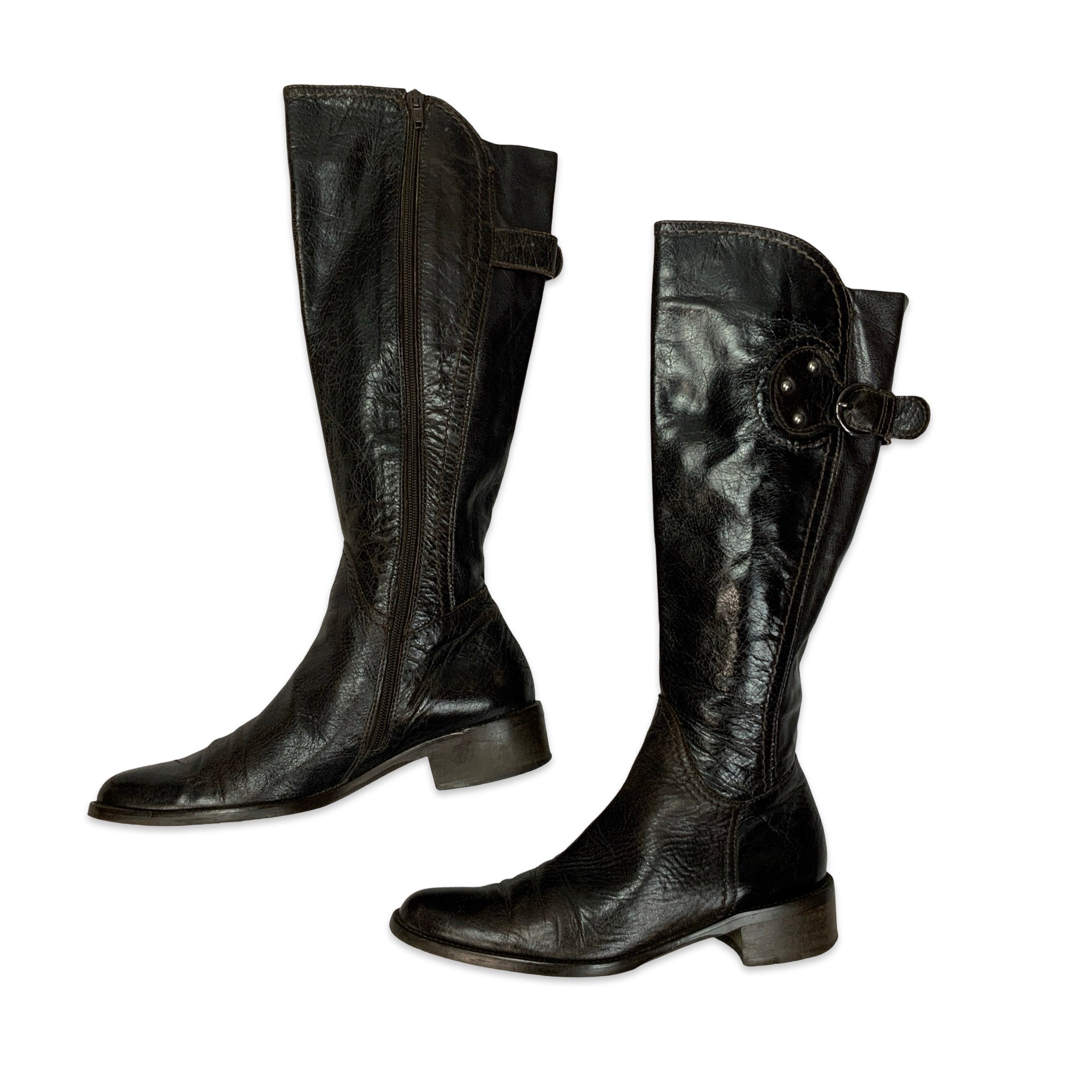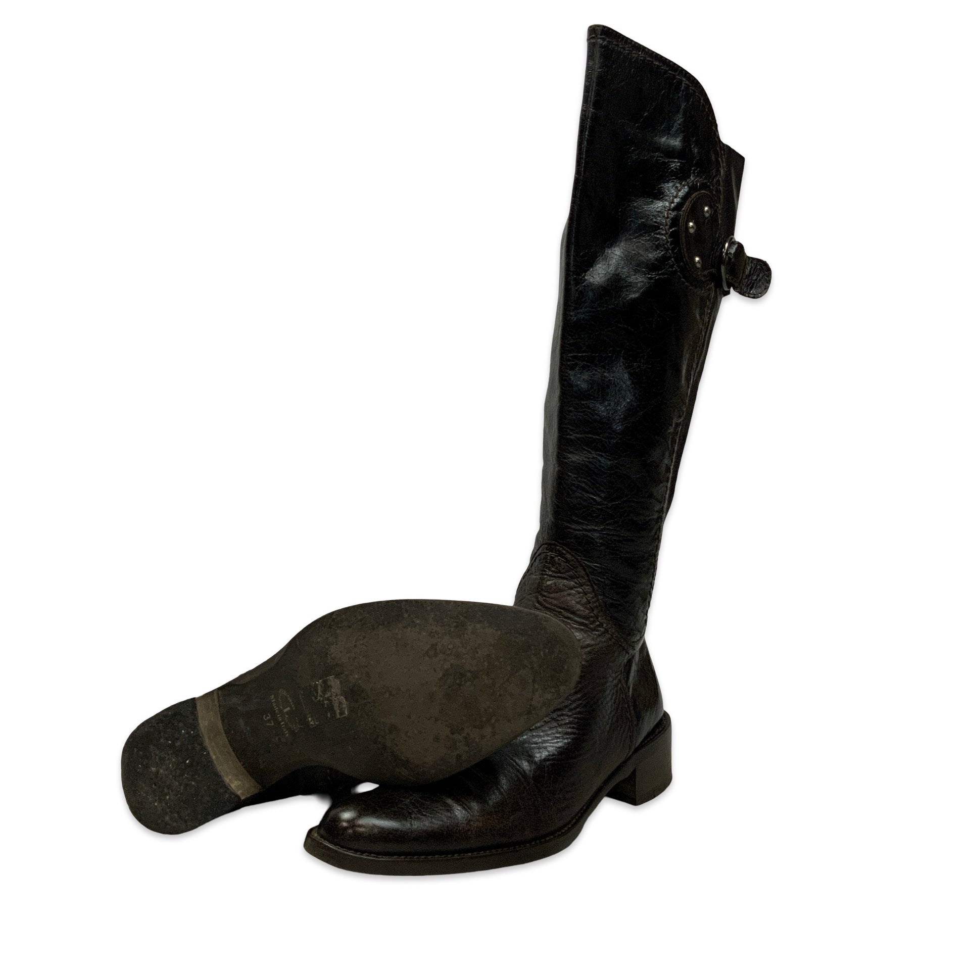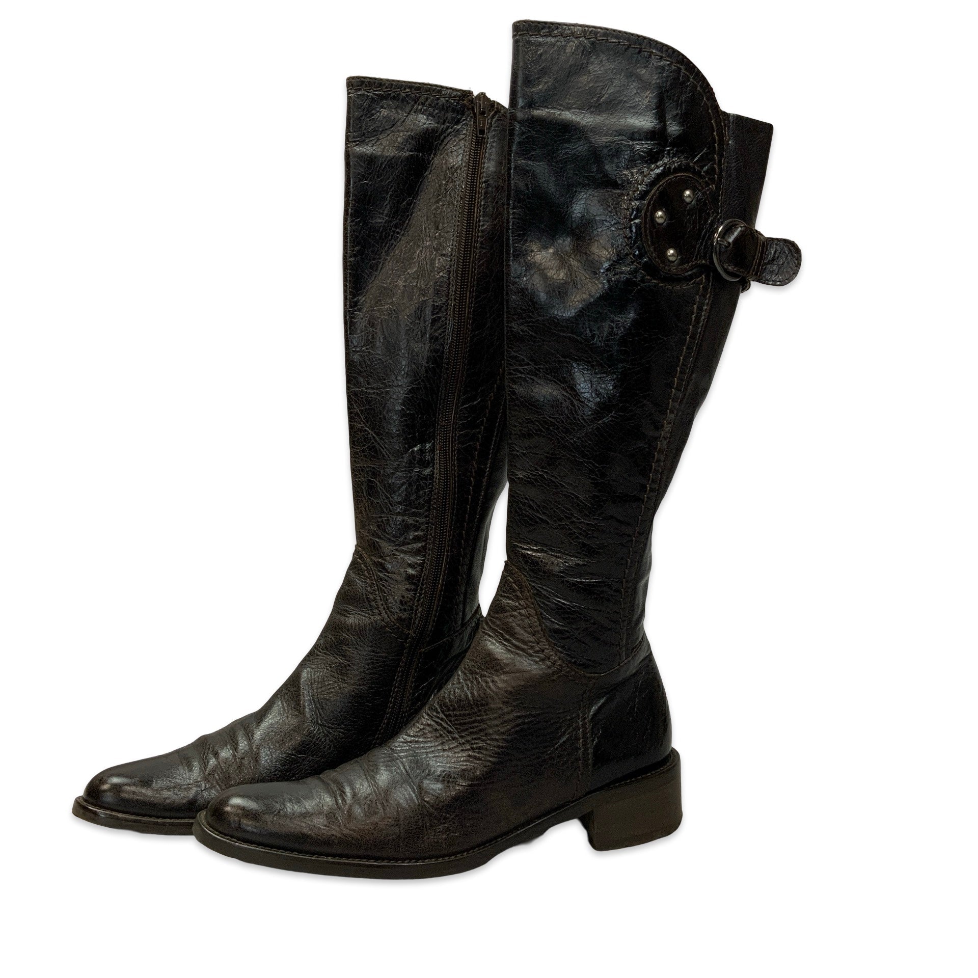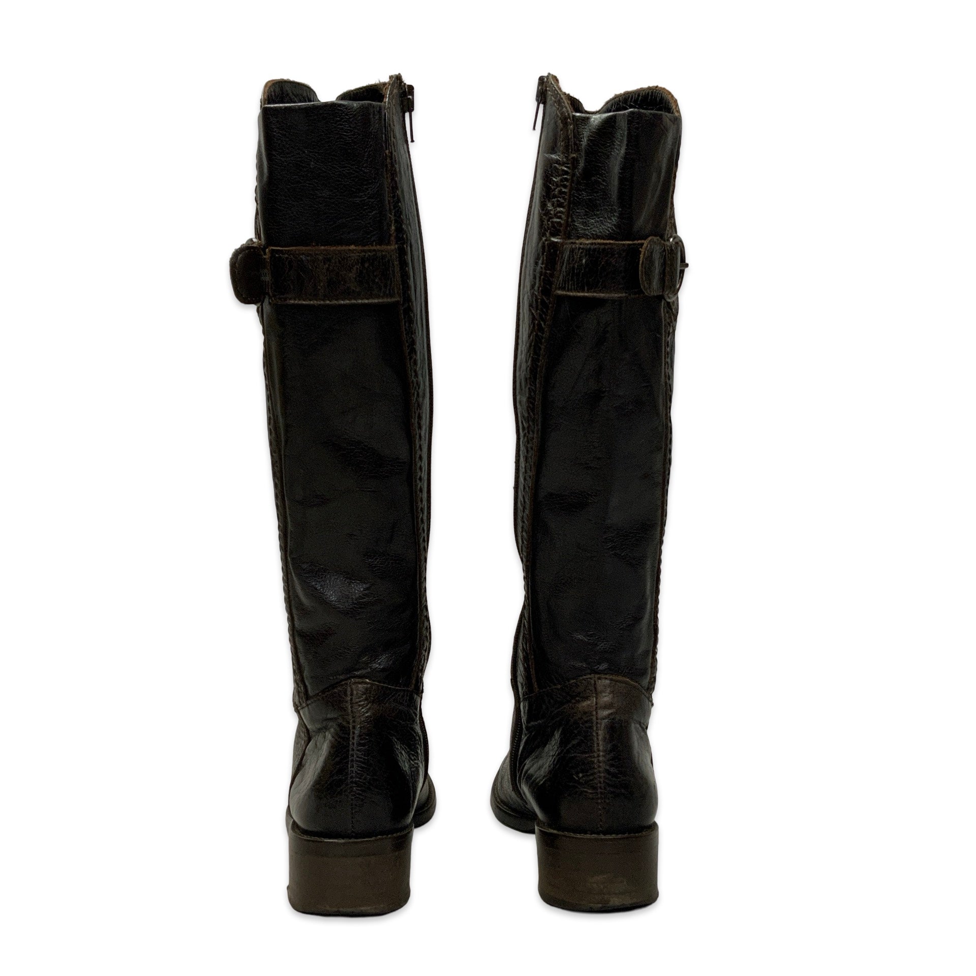 Vintage Dark Brown Leather Boots with Buckle UK 4.5