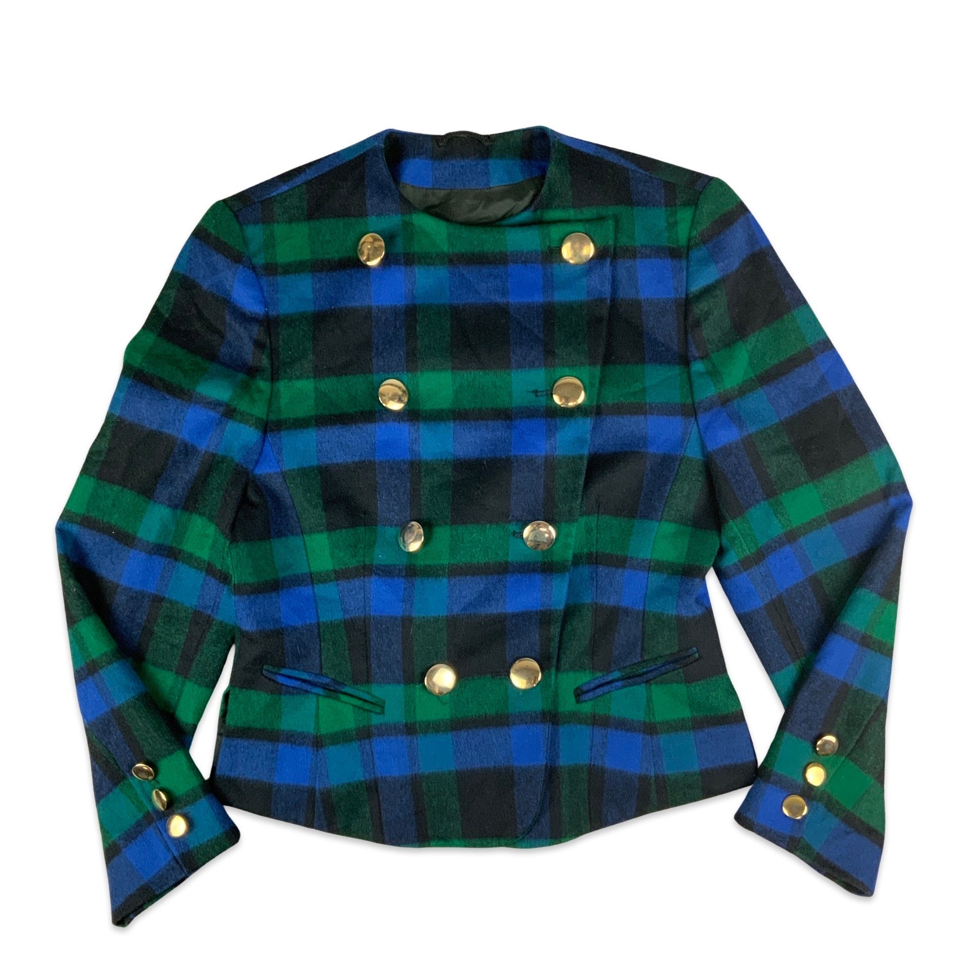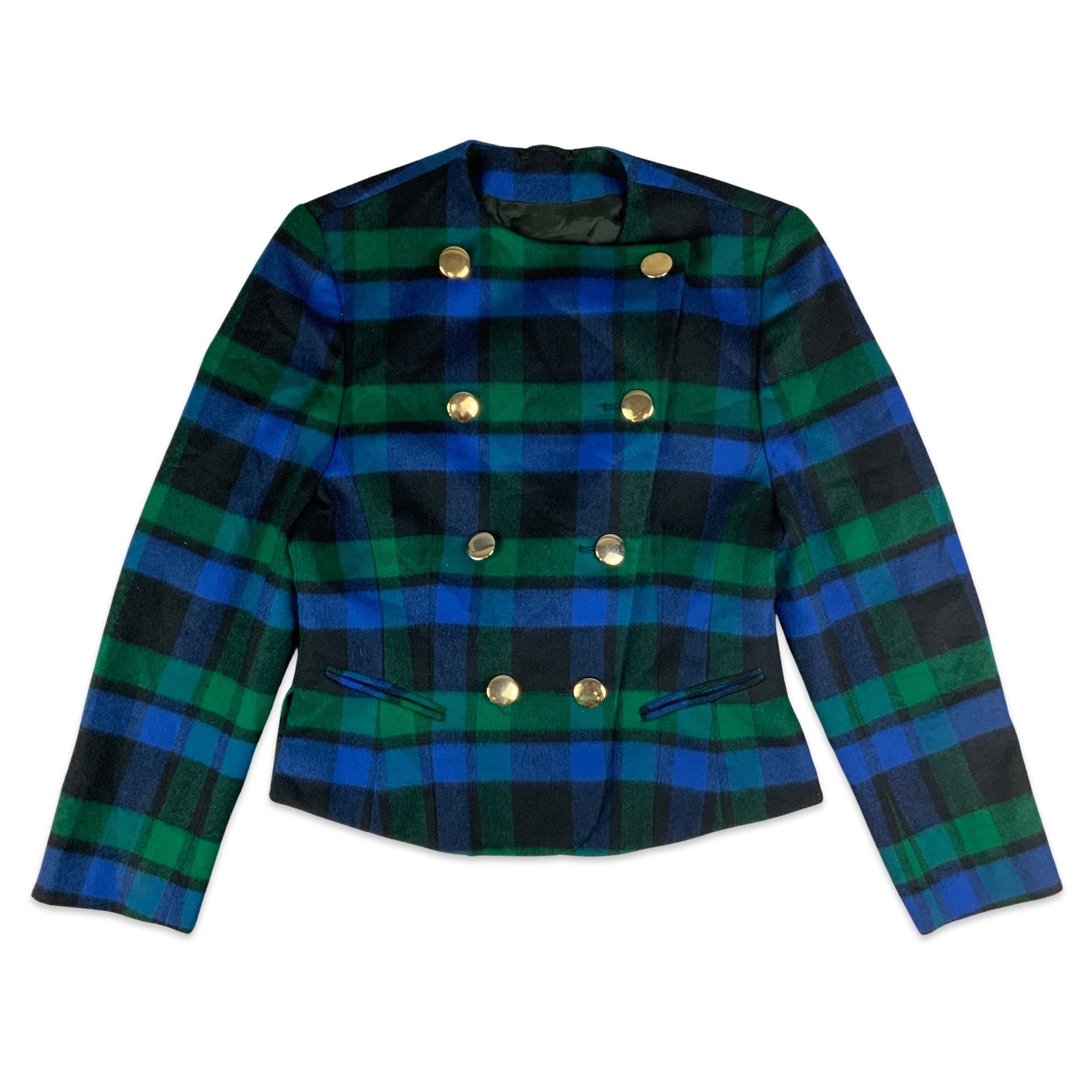 Vintage Blue Black & Green Plaid Wool Coat 8 10