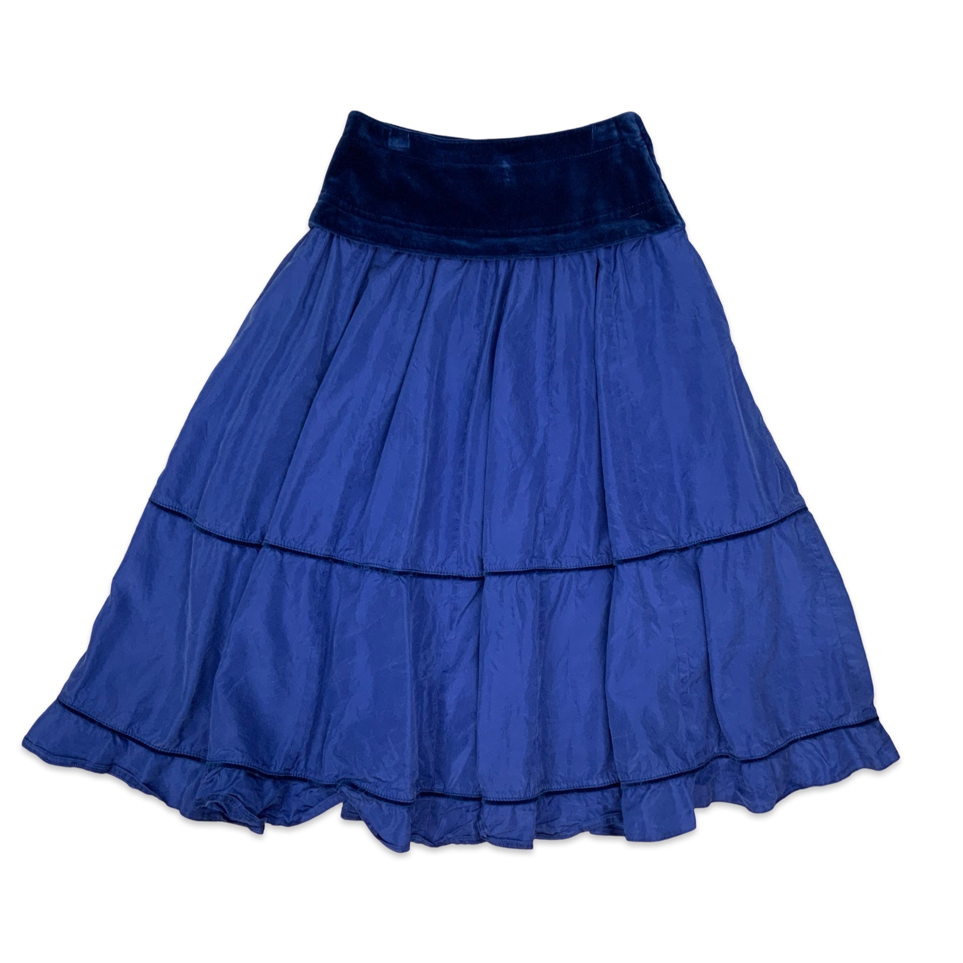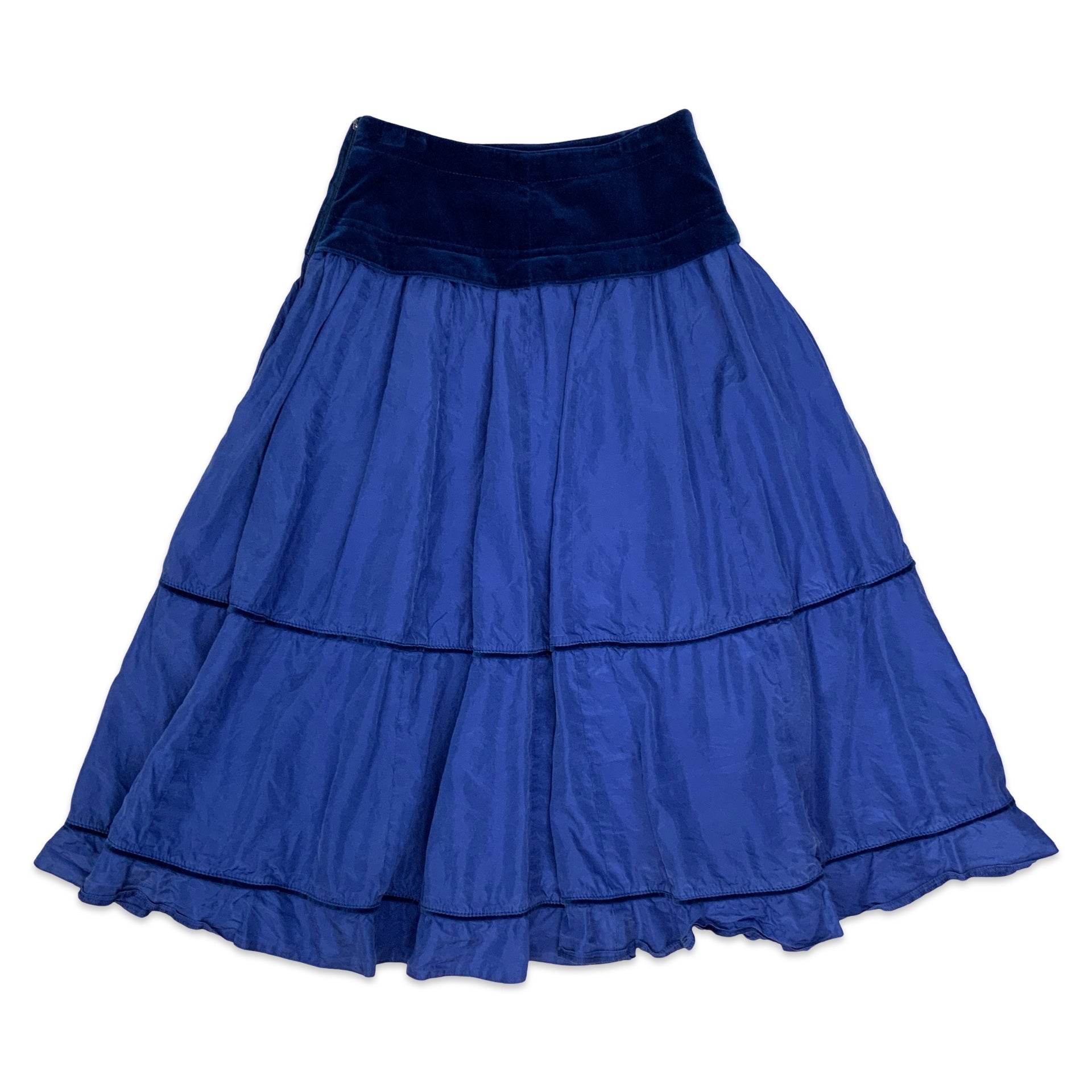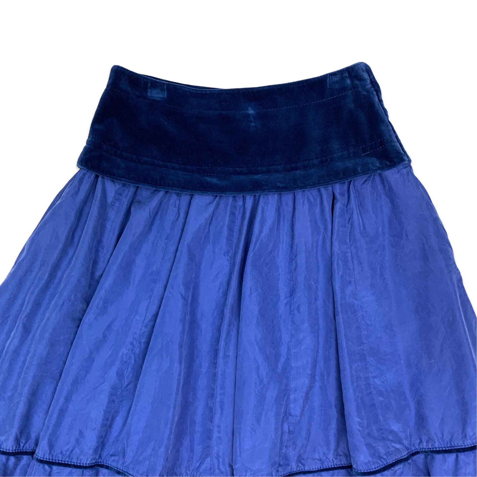 Women’s vintage tiered skirt. Blue velvet & shimmer fabric. Side zip fastening.