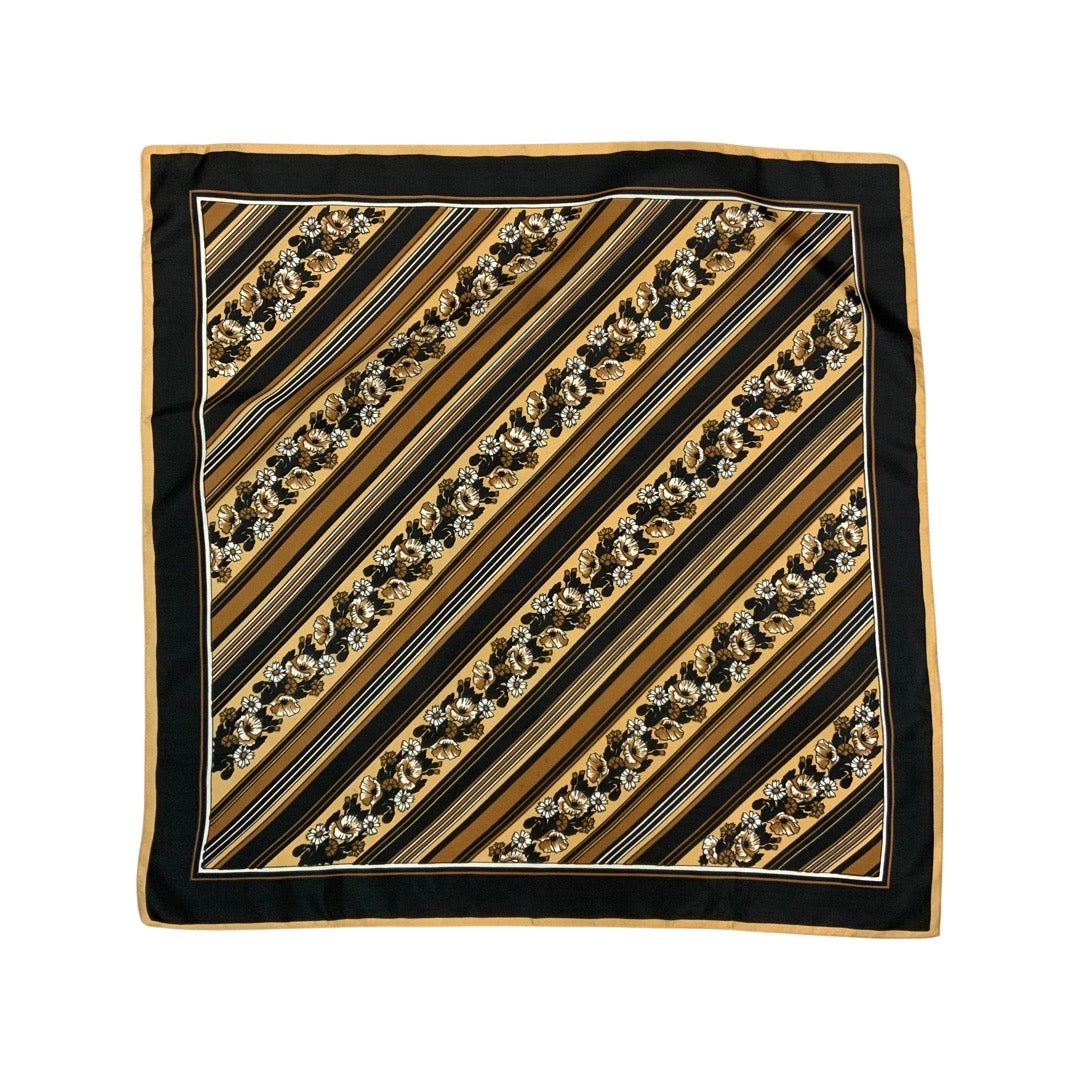 Vintage Brown Floral Striped Scarf