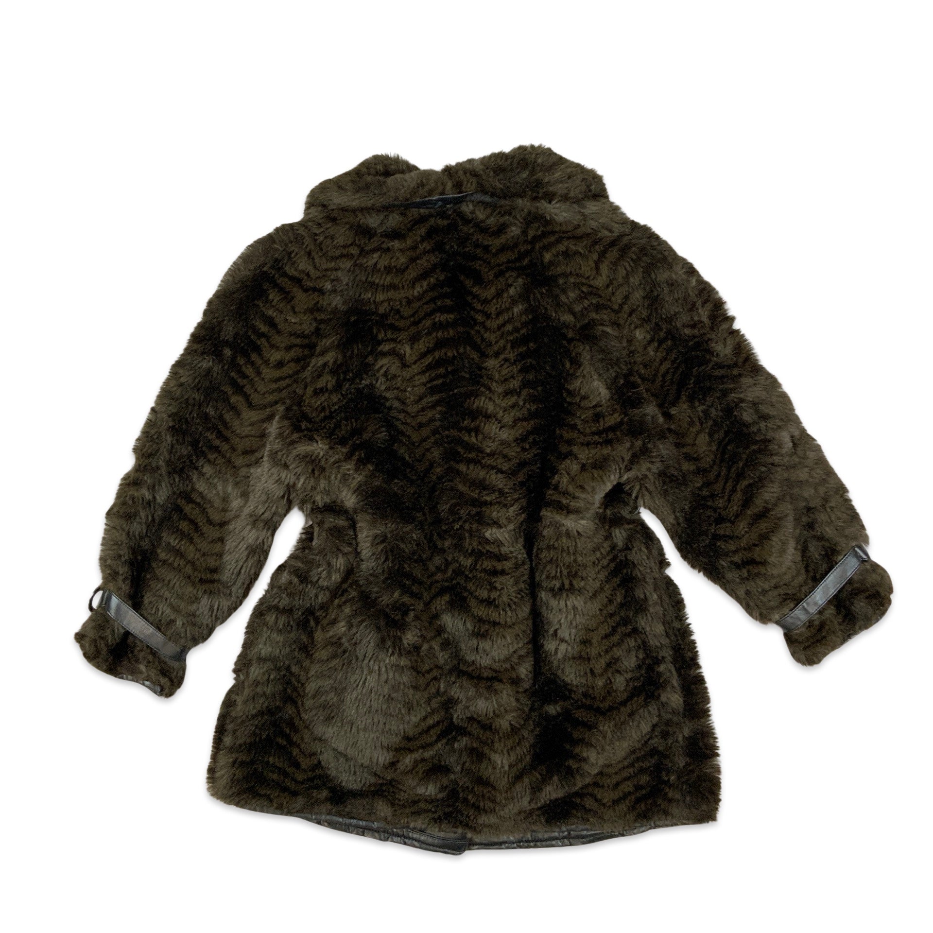 Vintage Brown Print Faux Fur Leather Coat 12 14 16