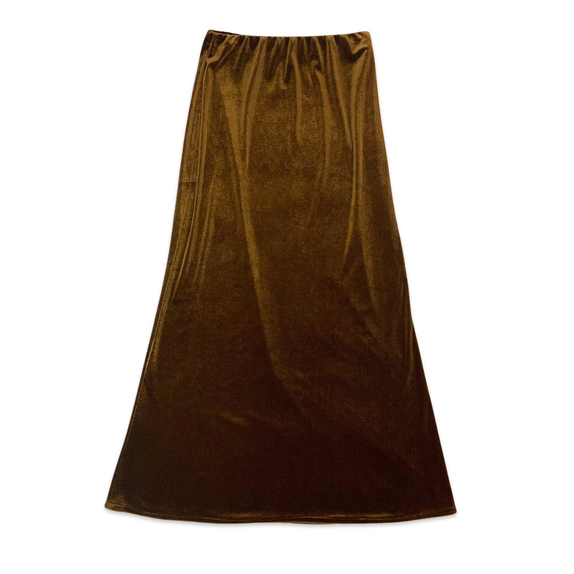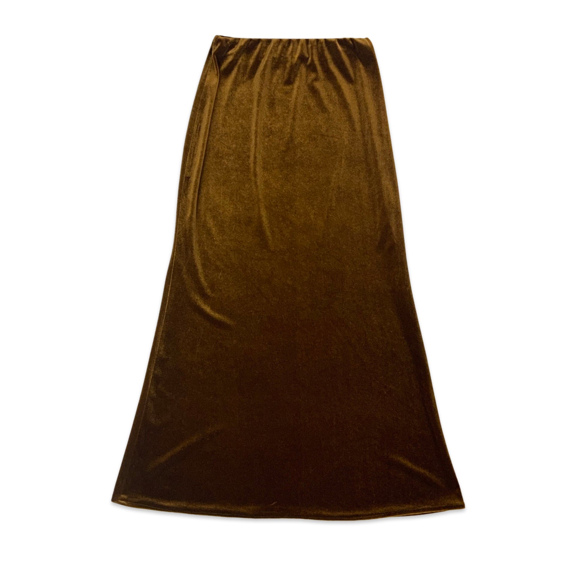 Women’s vintage maxi skirt. Brown velour fabric. Elasticated waist.