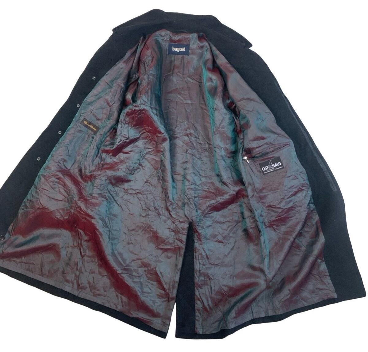 Here we have a beautiful, rare Bugatti cashmere woollen button up overcoat in charcoal grey/black