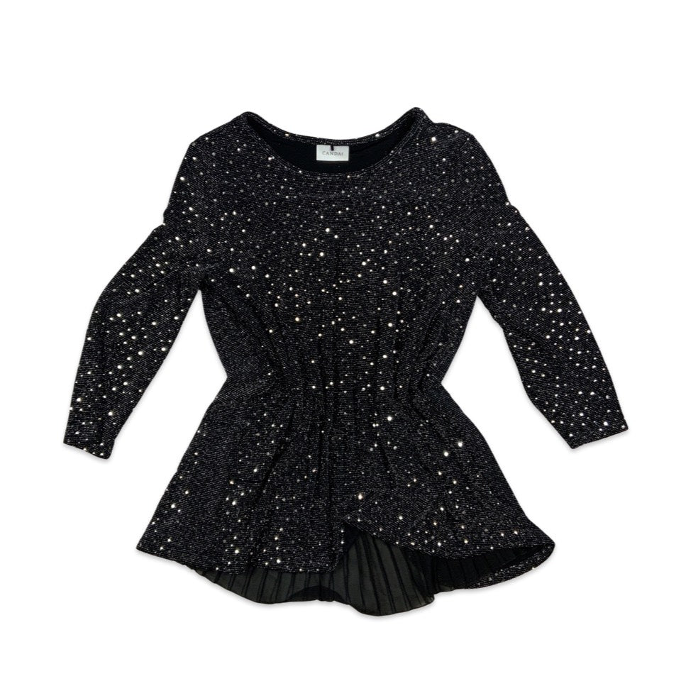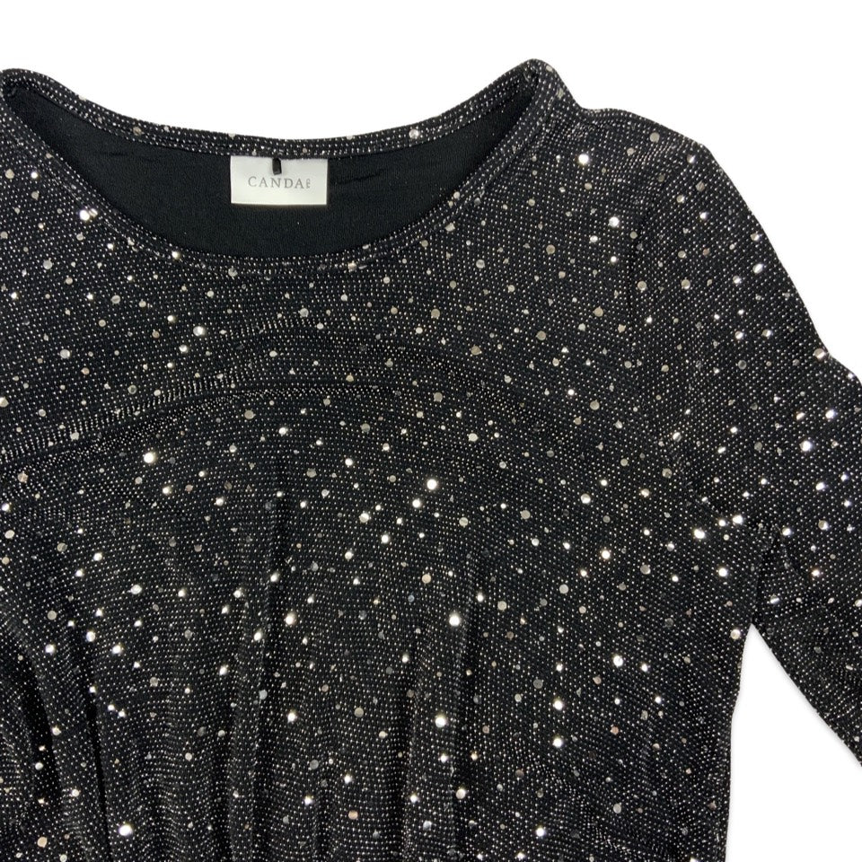 Vintage Canda Sequinned Black and Silver Long Sleeve Blouse 14 16 18