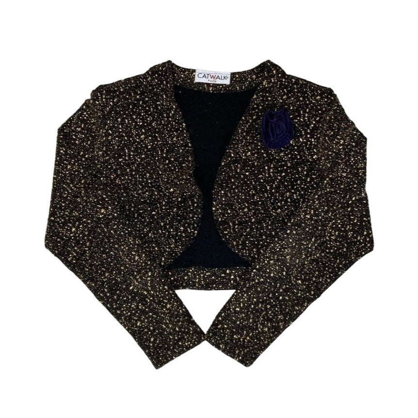 Vintage ‘Catwalk’ Black Gold Sparkle Crop Bolero Jacket 8 10 12