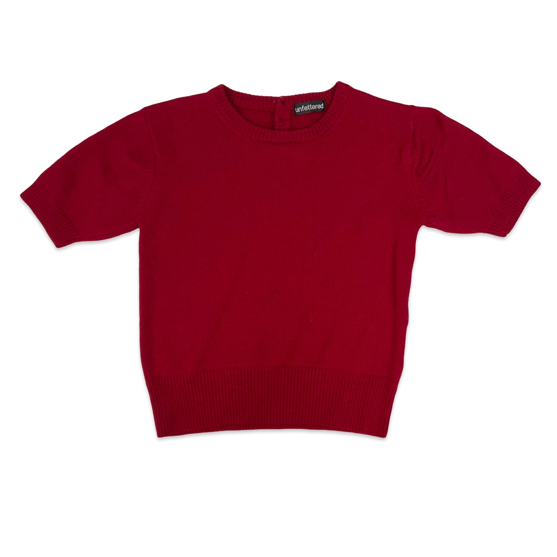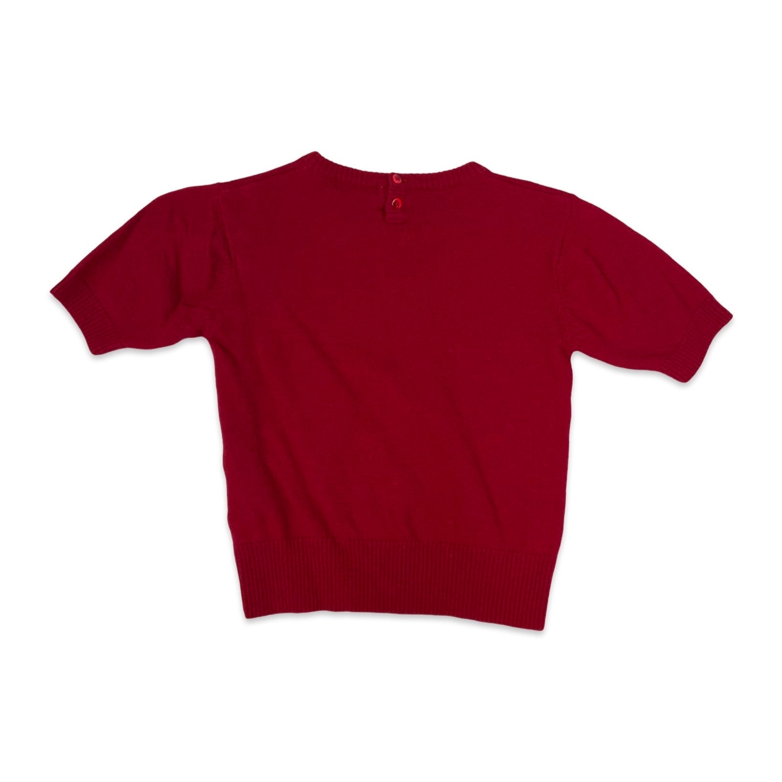 Women’s vintage short sleeve jumper. 100% Wool. Has two buttons at back.