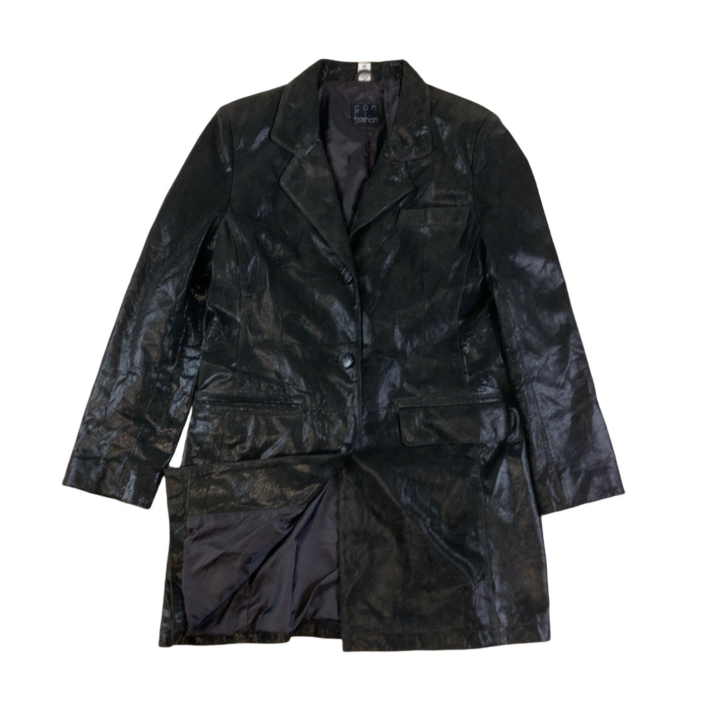 Vintage ‘Con Fashion’ genuine suede leather jacket blazer with sparkle detail. Deep v neckline, camp collar and front button fastening. Side pockets, chest pocket, and an internal pocket. Slight batwing sleeves. Silk-feel lining throughout.