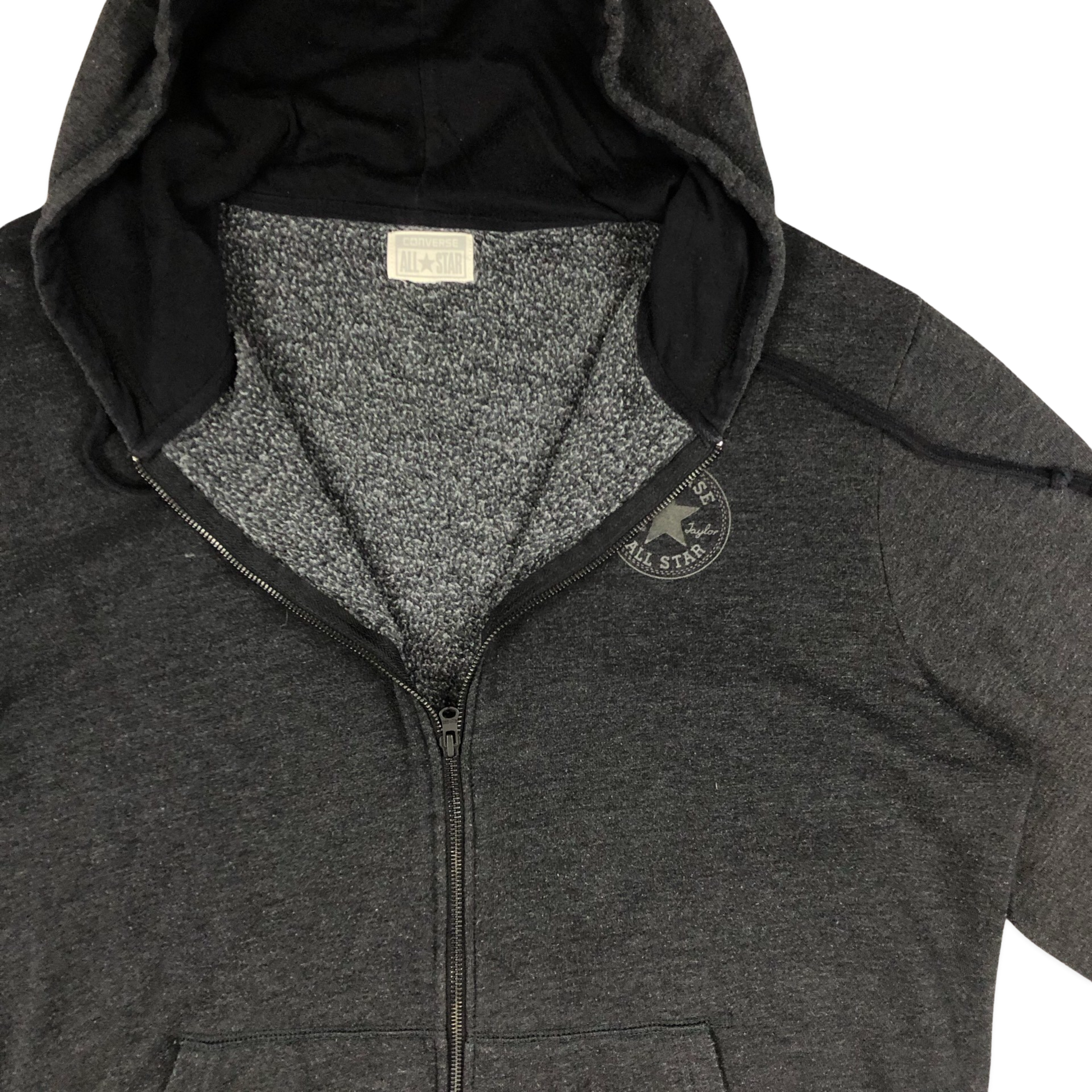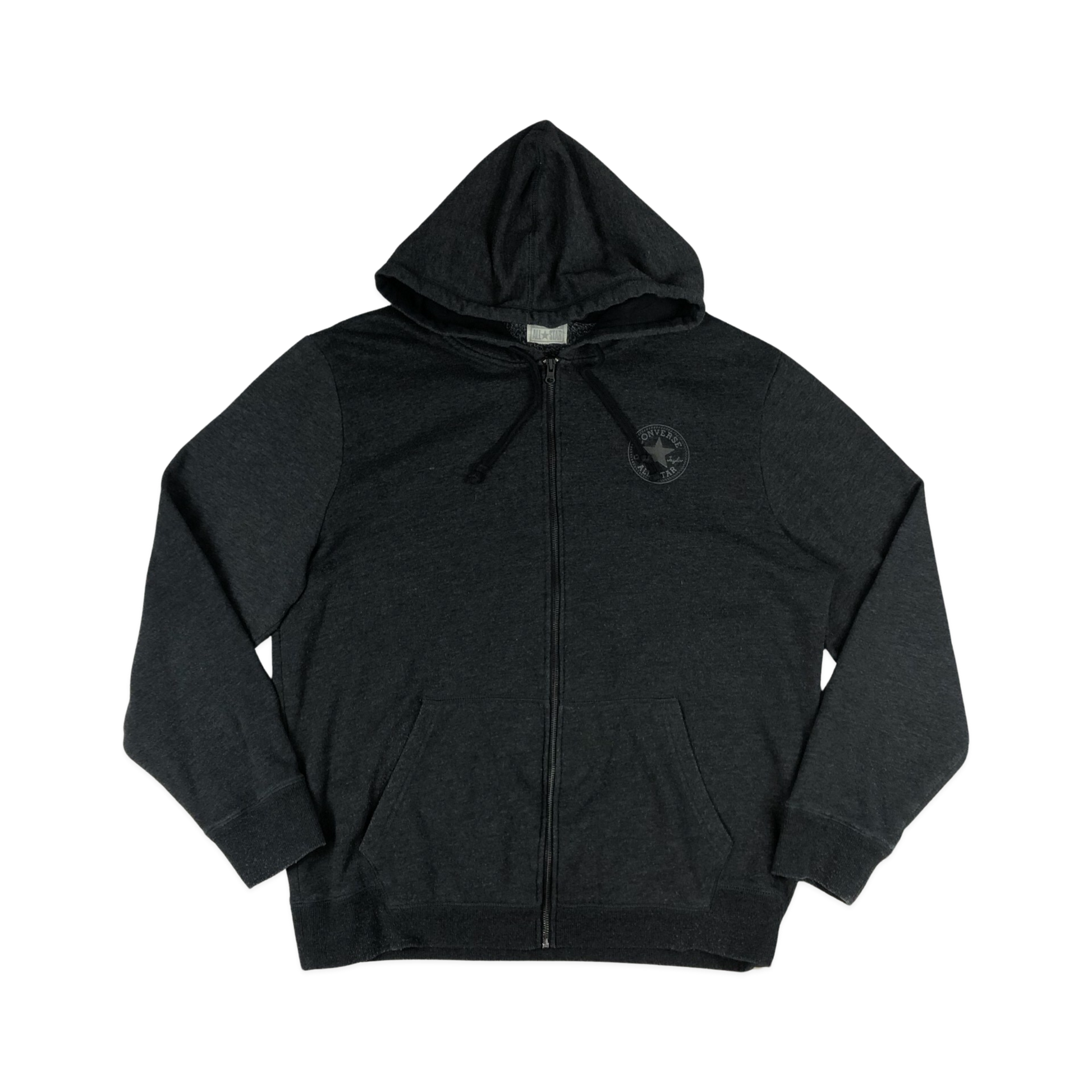 Vintage zip-up grey Converse hoodie with embossed logoed patch on chest.