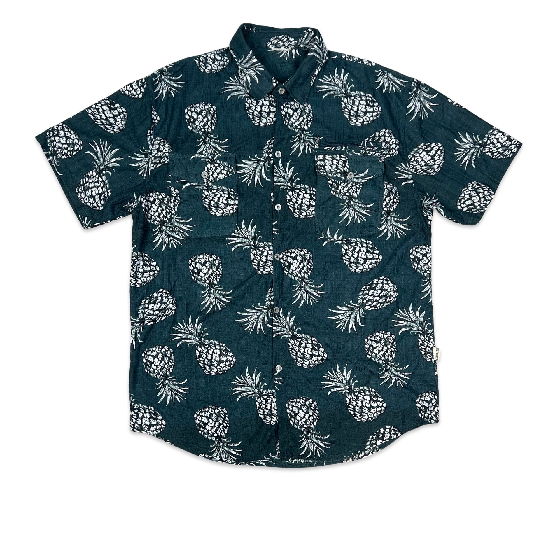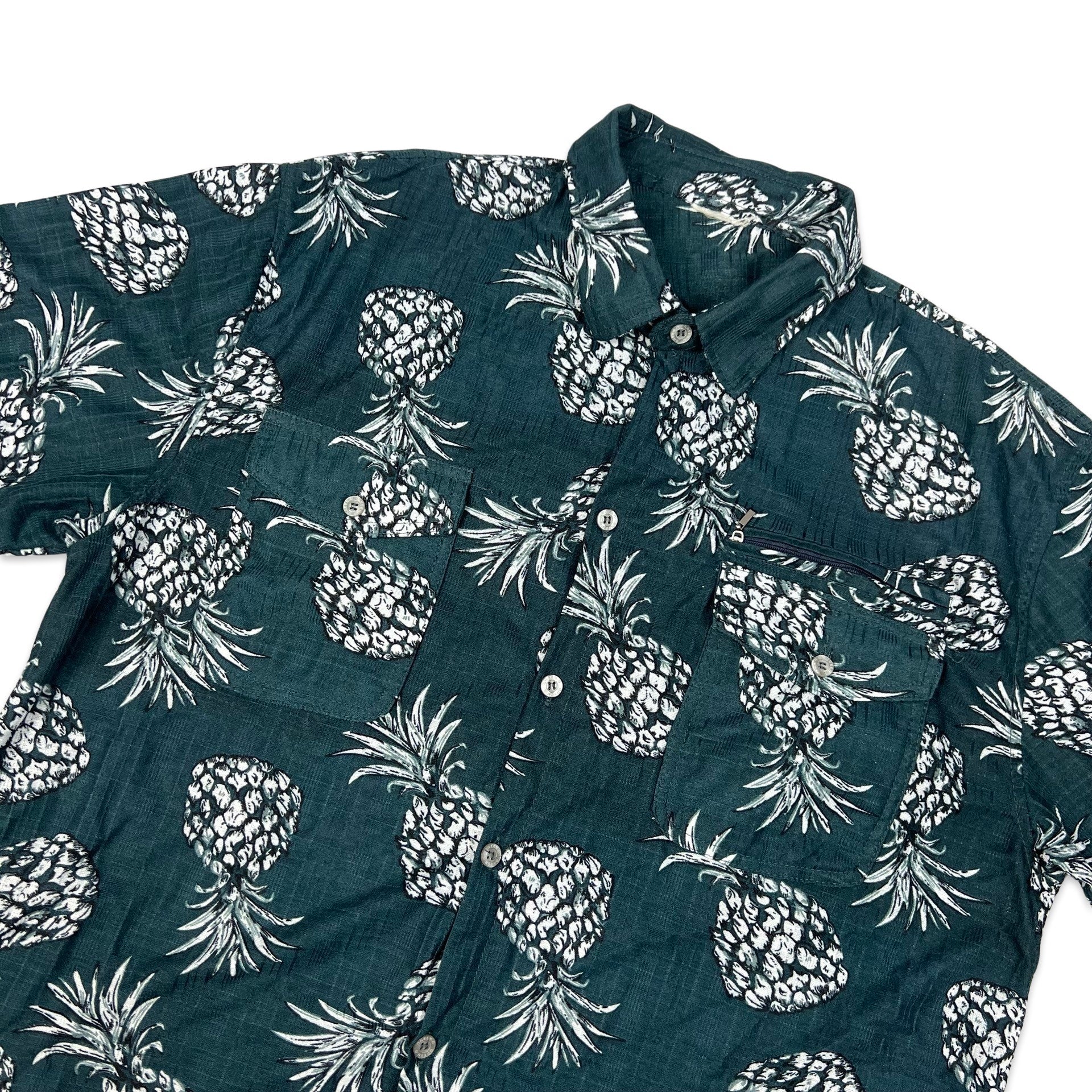 Vintage Dark Teal Pineapple Print Shirt XL XXL