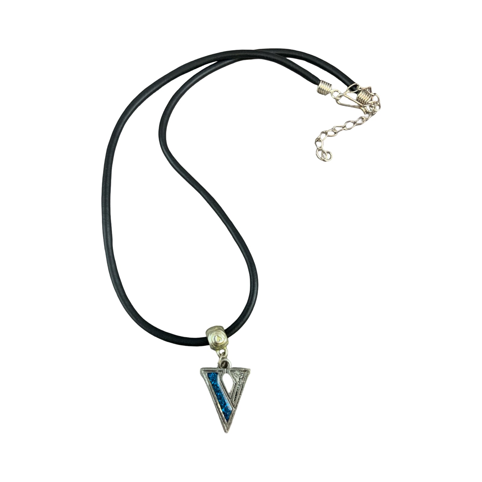 Vintage Deadstock 90s Y2K Blue Letter 'V' Initial Thong Necklace