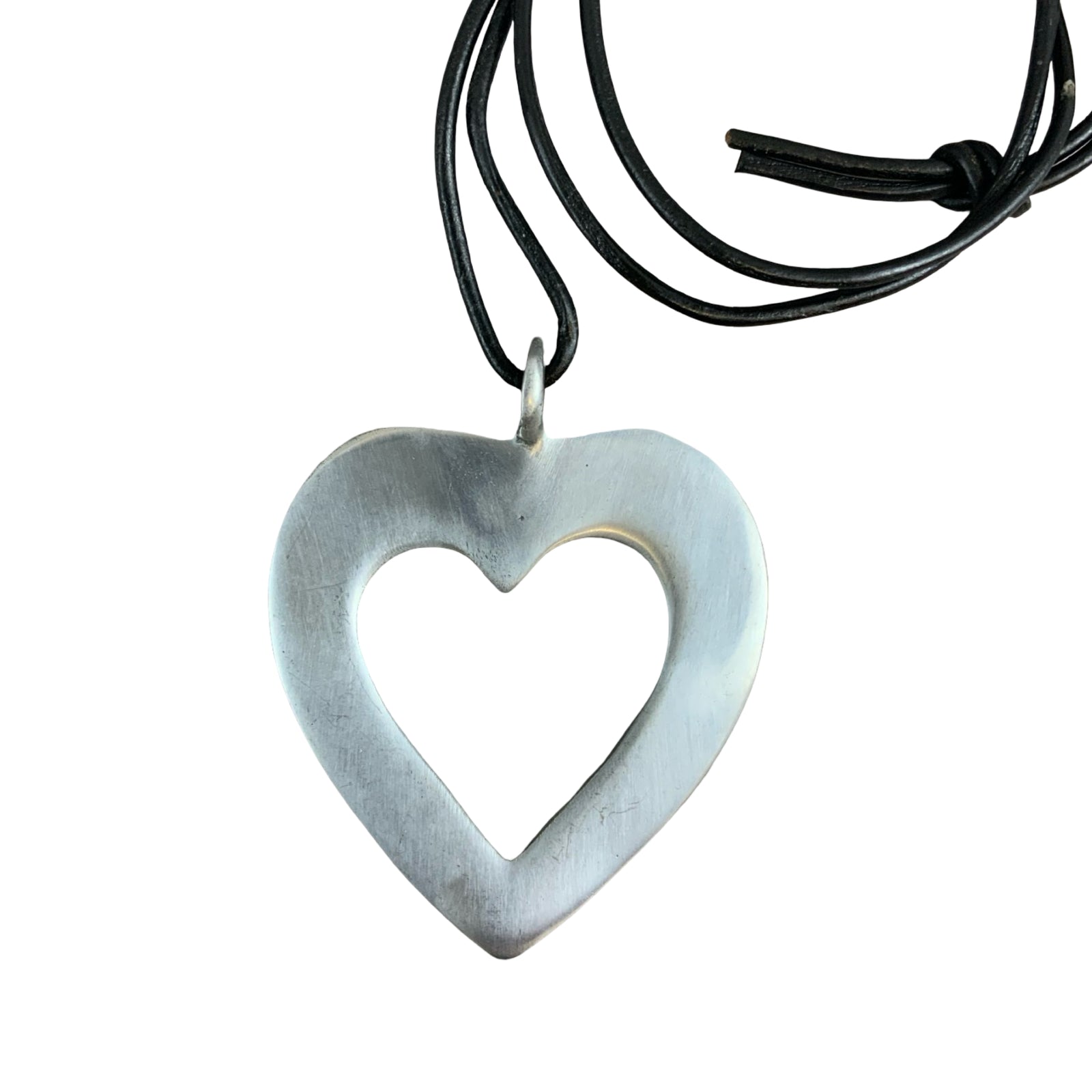 Vintage Deadstock 90s Y2K Large Metal Heart Shaped Thong Necklace