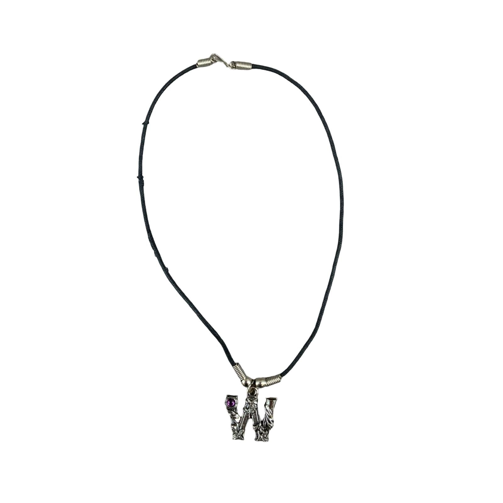 Vintage Deadstock 90s Y2K Purple Letter 'W' Initial Fairy Gem Thong Necklace
