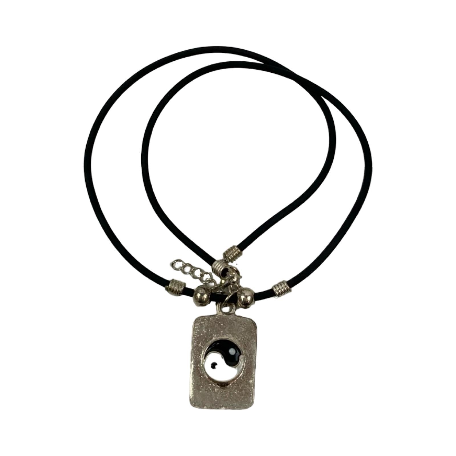 Vintage Deadstock 90s Y2K Yin Yang Metal Silver Tag Necklace