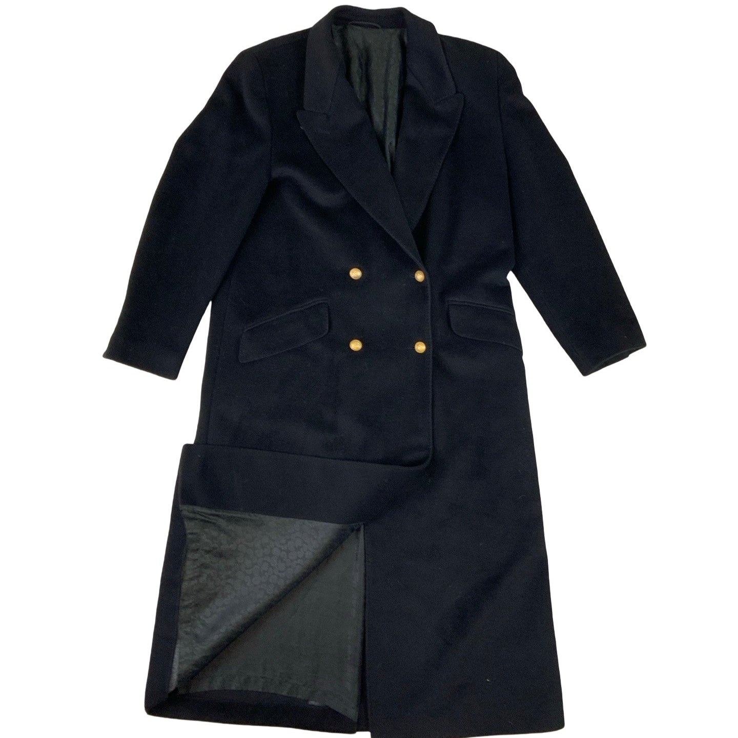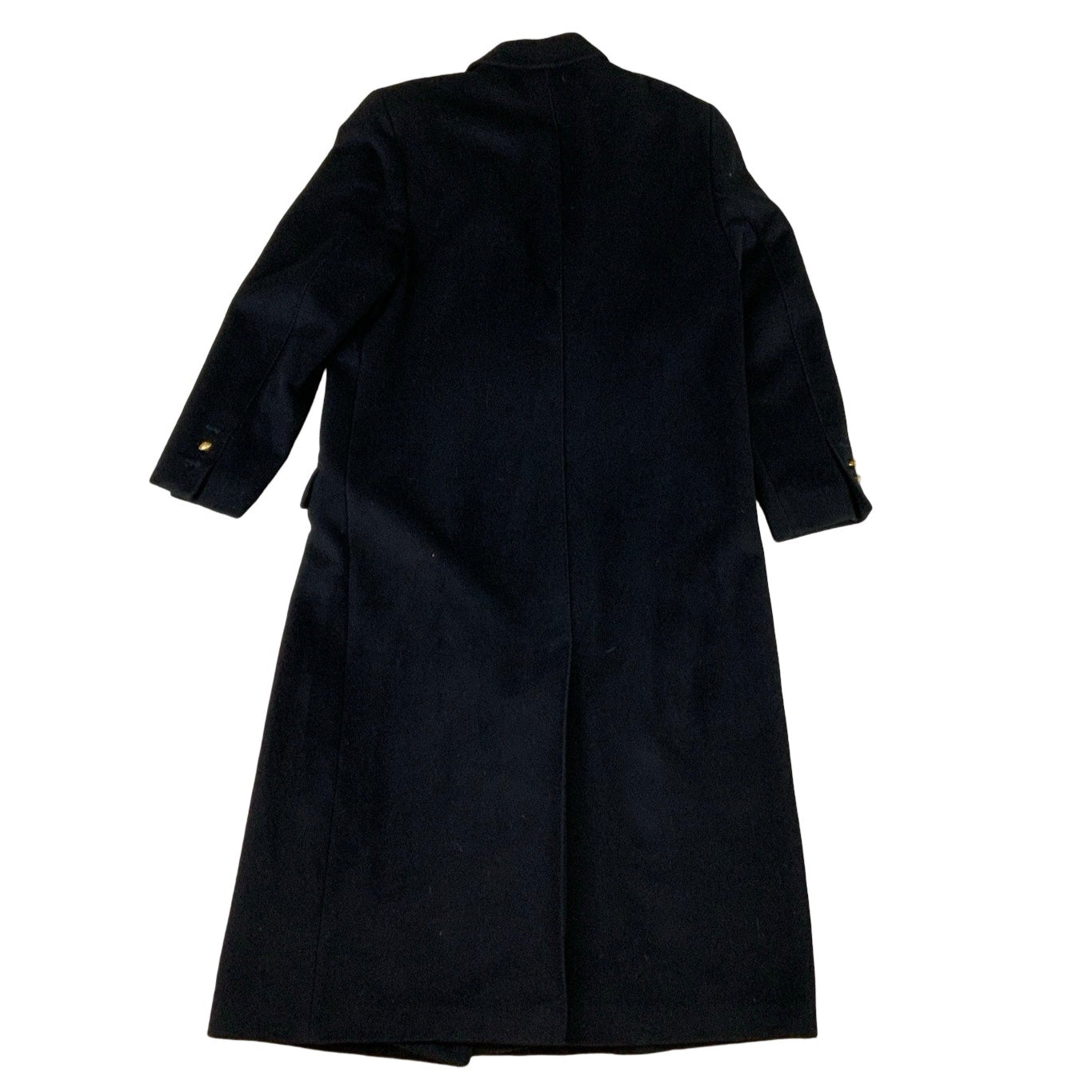 Vintage 90s trench coat. Matching belt with buttoned pockets in dark navy. front button up fastening. 100% wool.