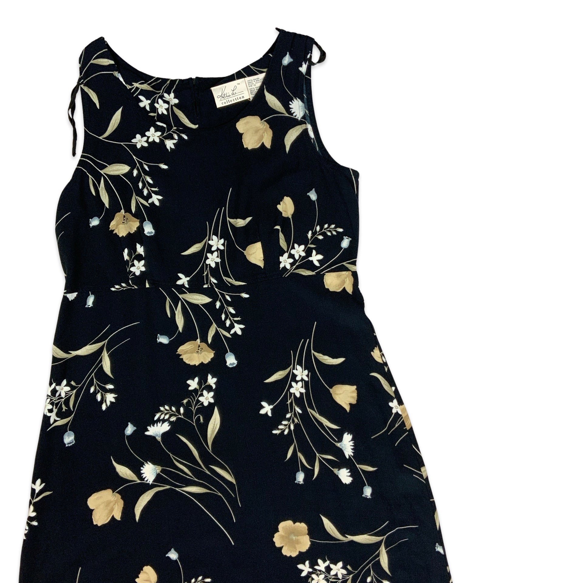 Y2K Black Sleeveless Floral Print Dress 14 16