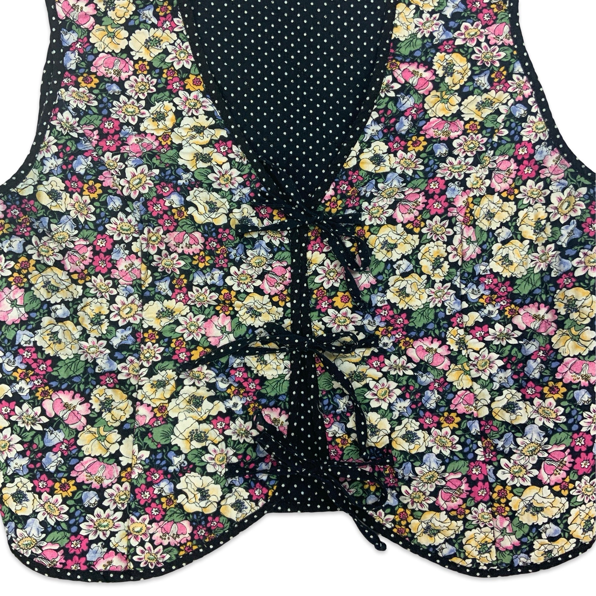 Women’s vintage waistcoat. Floral & polka pot fabric with tie fastenings.