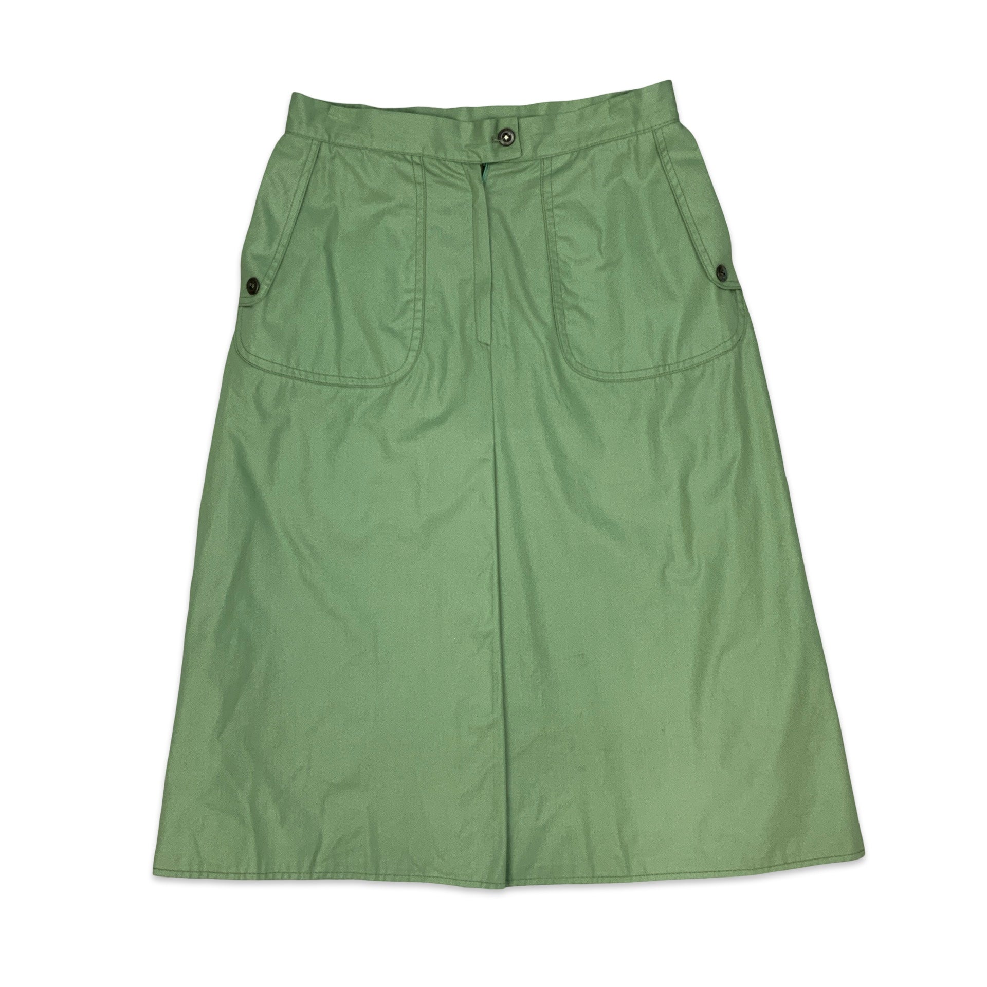 Women’s vintage midi skirt. Front fly zip and button fastening.