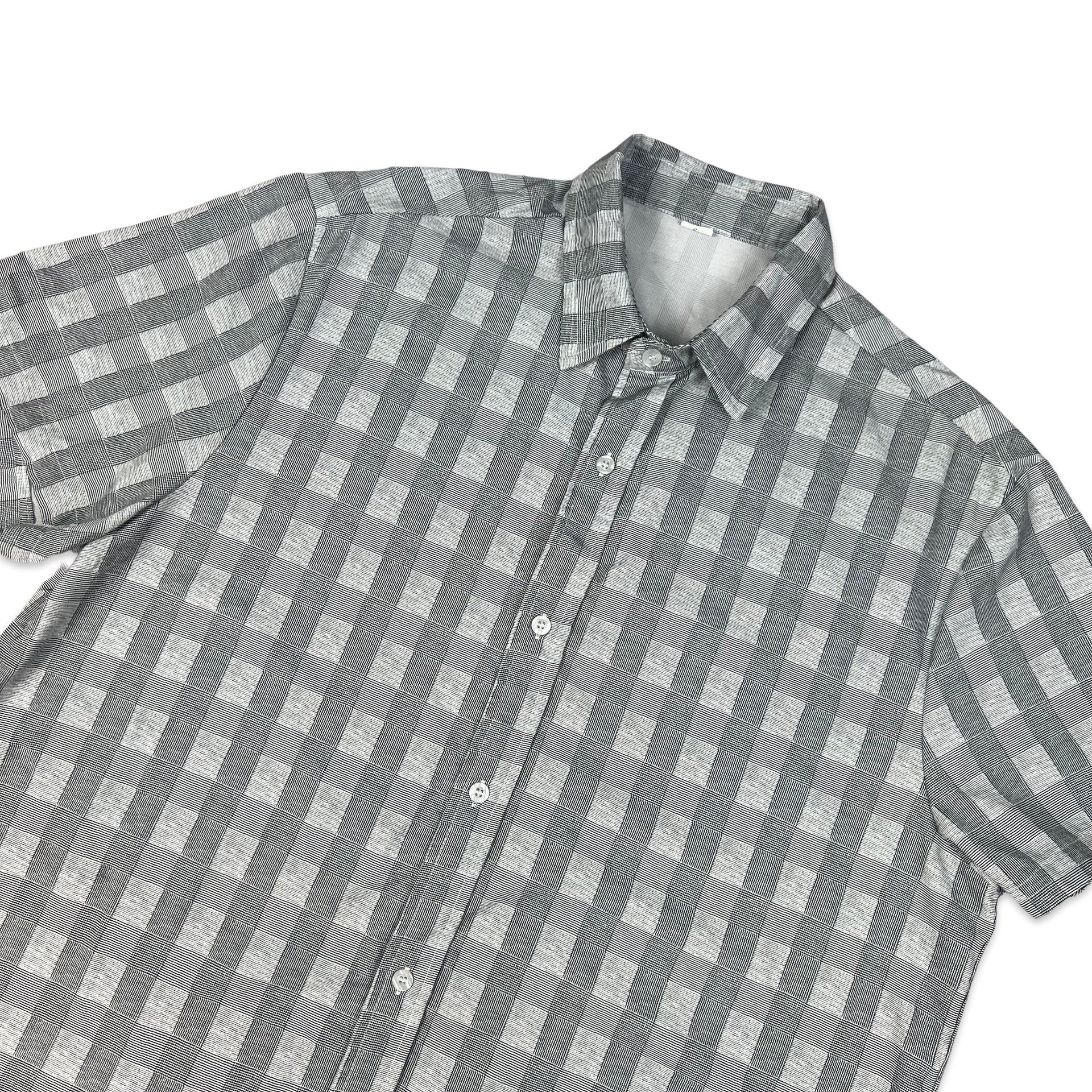 Vintage Grey & Black Checked Short Sleeve Shirt M L