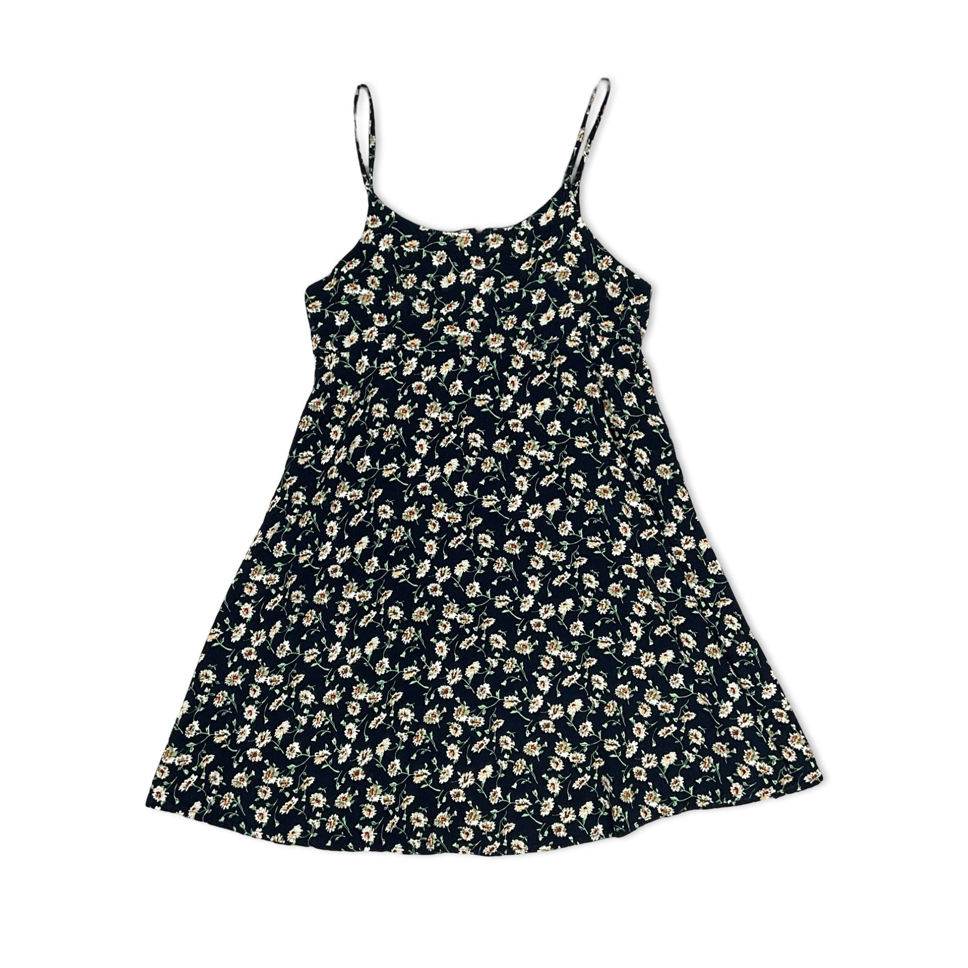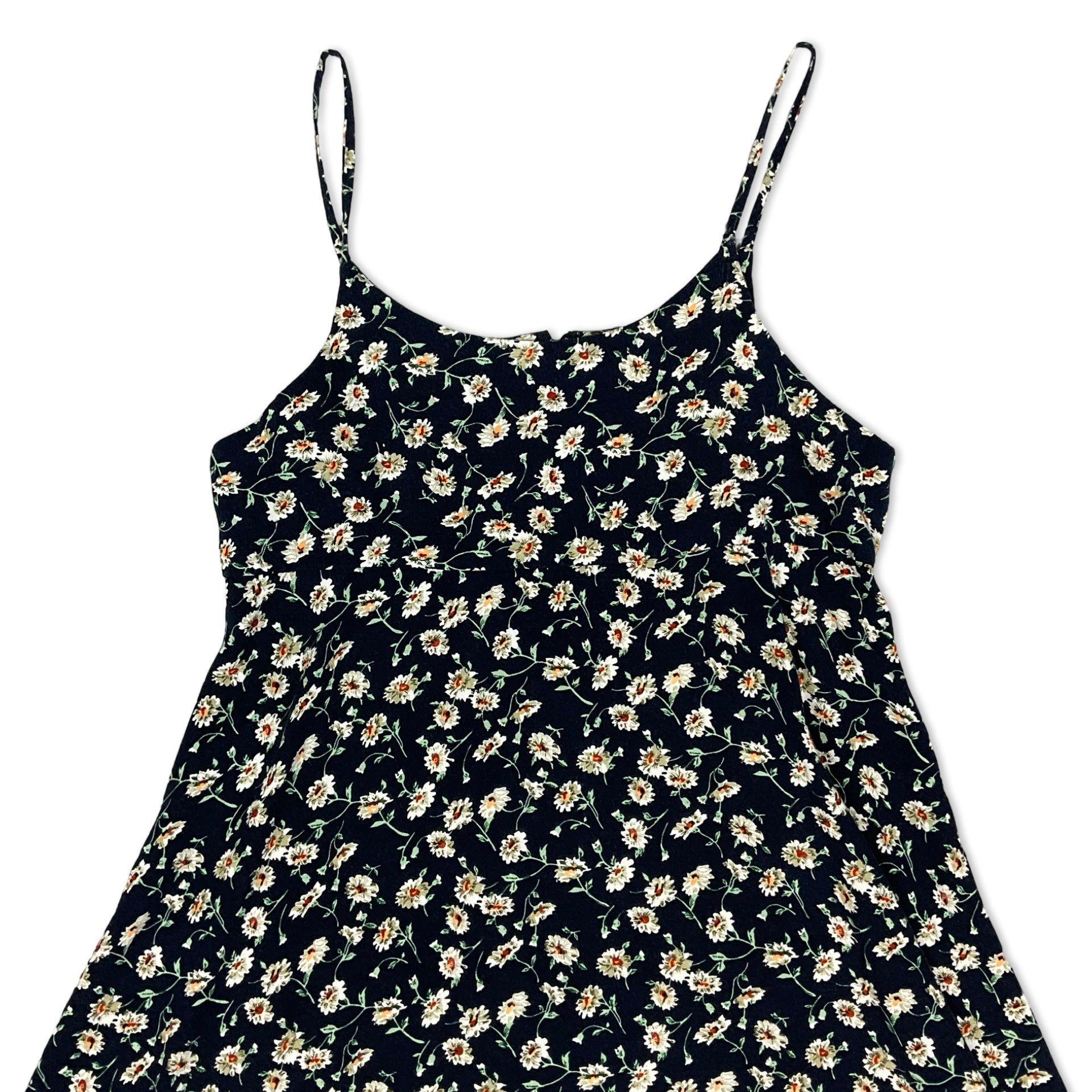 Women’s vintage summer dress. Navy with white & green floral print. Back zip fastening. 100% Rayon.