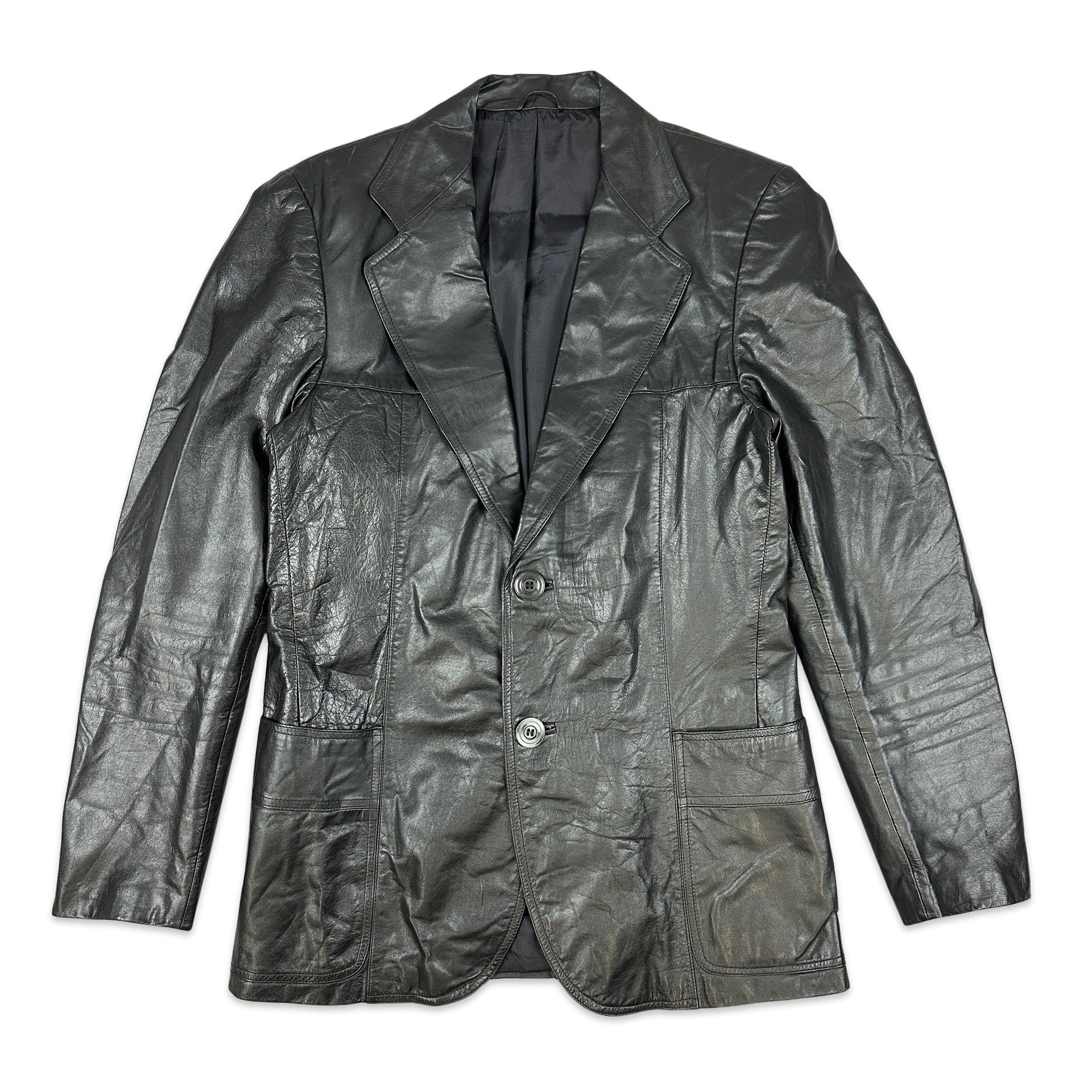 vintage ladies black genuine leather blazer. Light signs of natural wear as can be expected from vintage leather.
