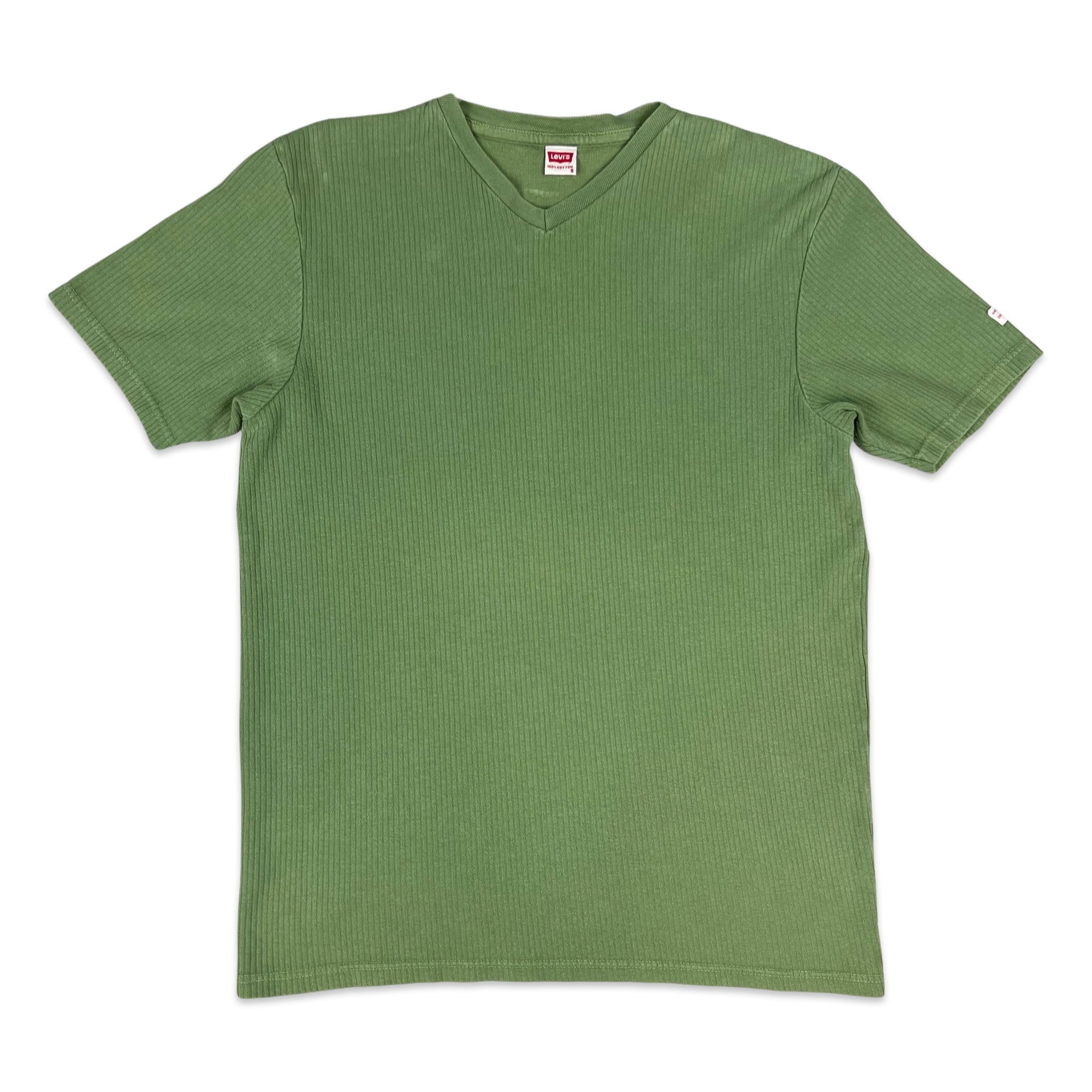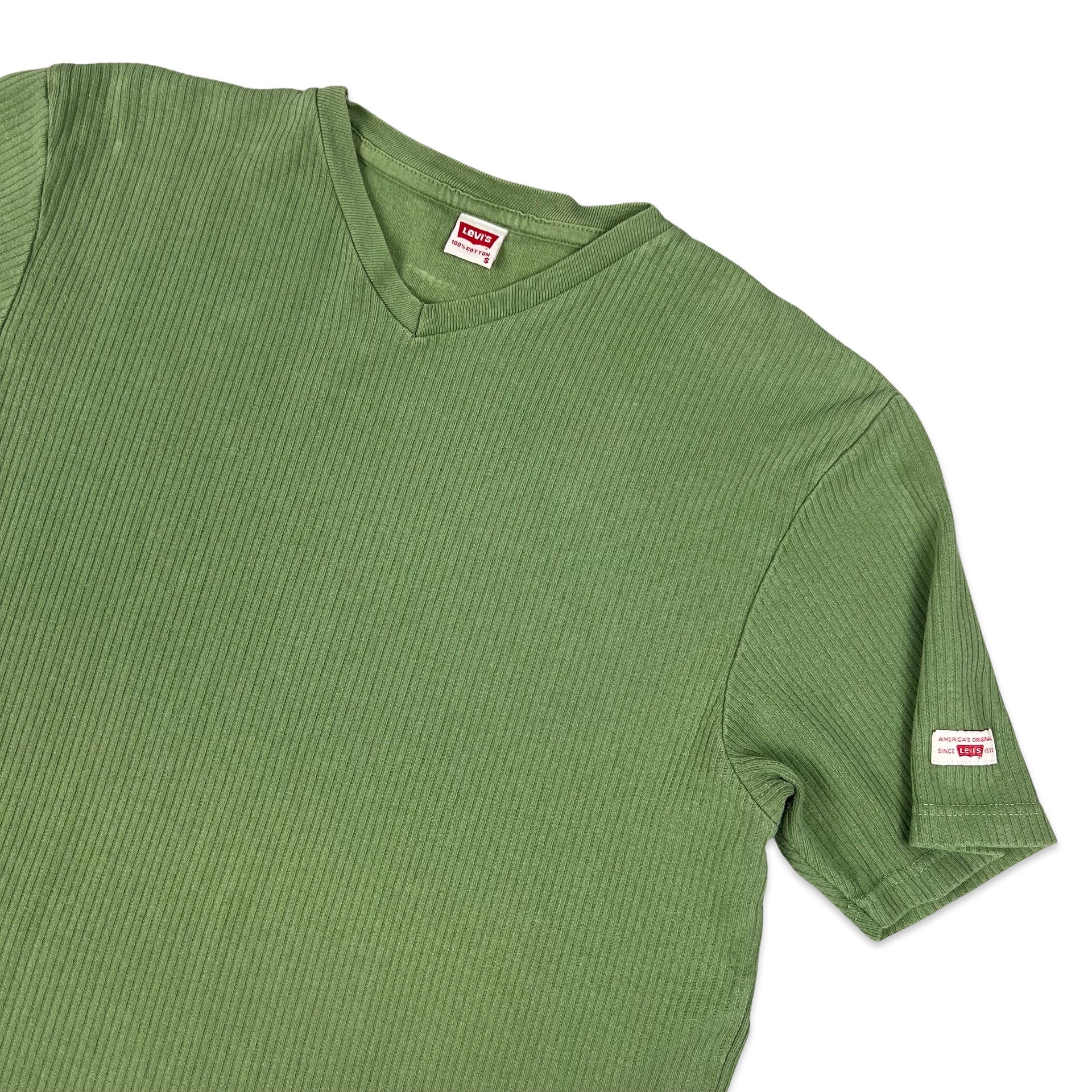 Vintage Levi's Green Ribbed V-neck Tee XS S