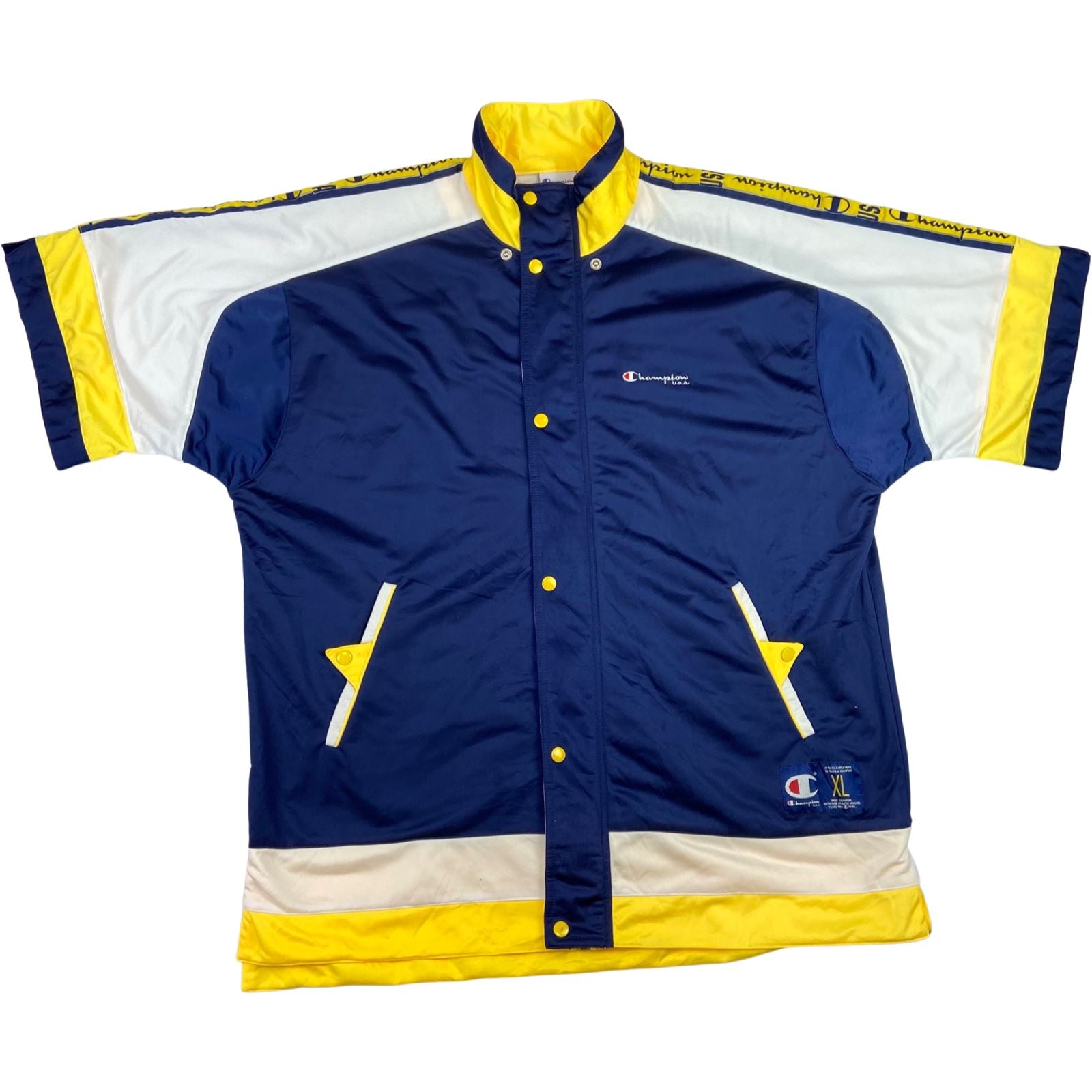 Vintage Nineties Blue, Yellow & White Champion Short Sleeve Track Jacket XXL