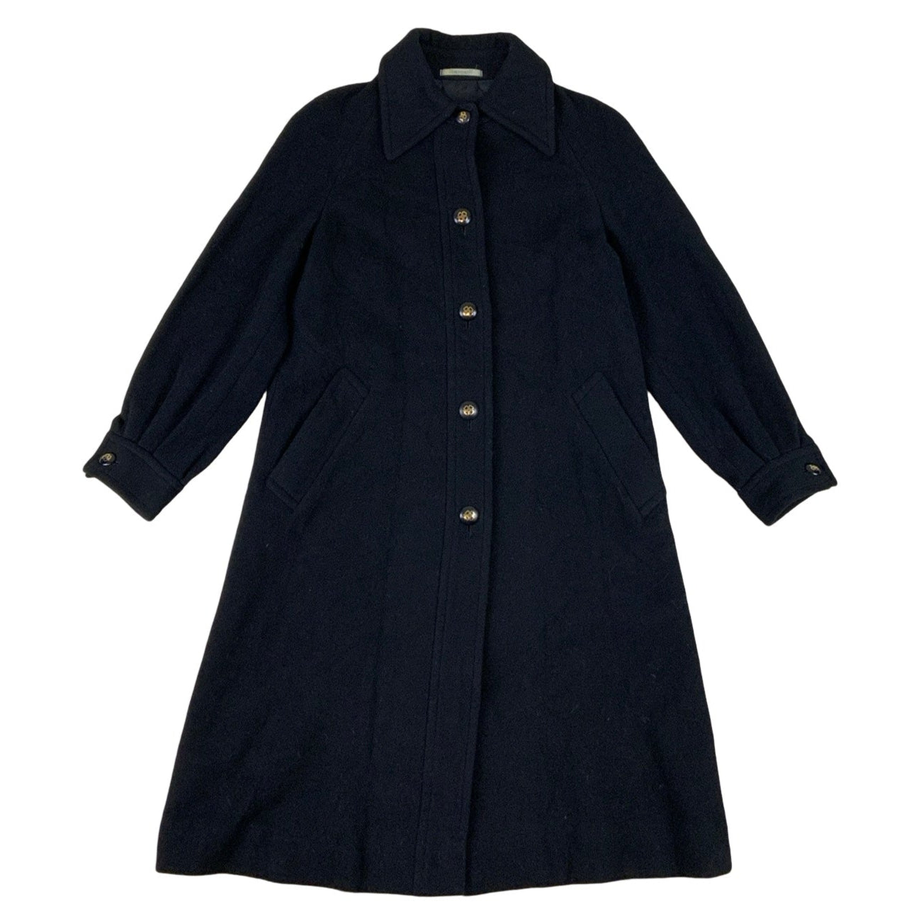 Vintage 90s trench coat. Long coat with gold four leaf clover button details. front button up fastening. 100% wool.