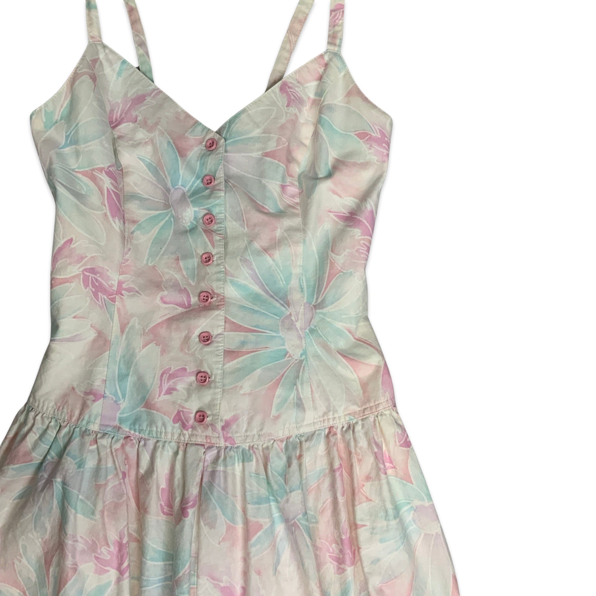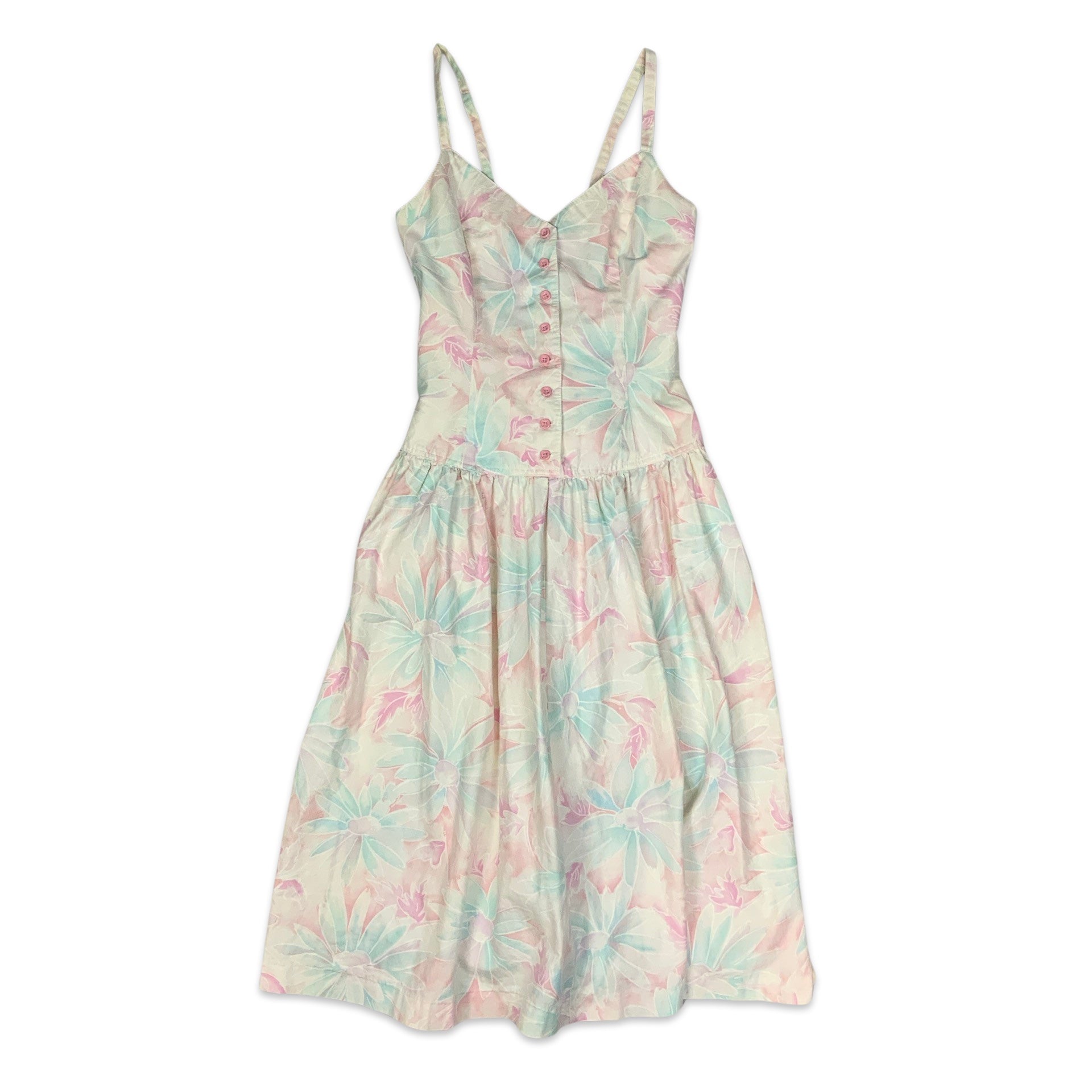 Vintage Pastel Coloured Floral Print Strappy Maxi Dress 4 6