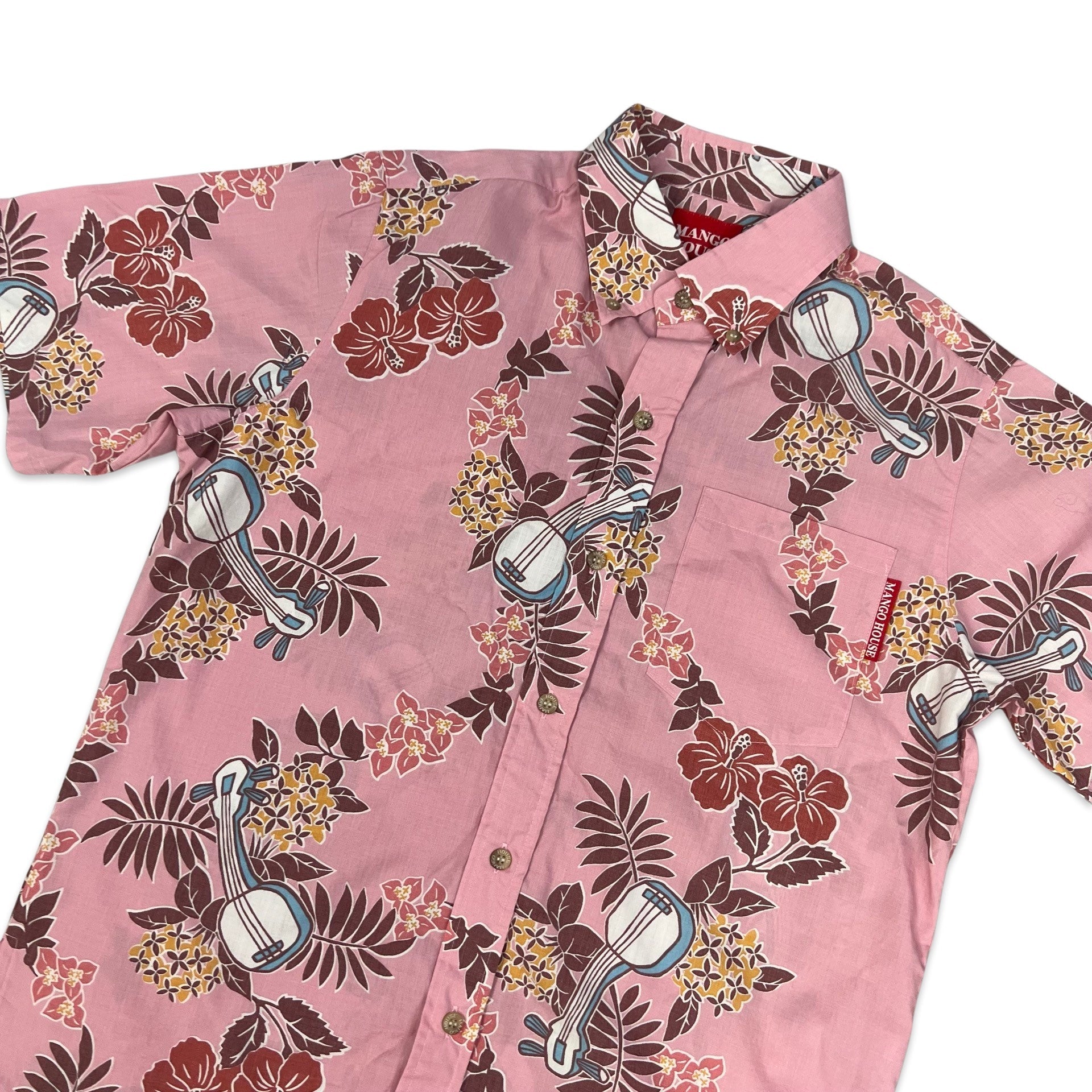 Vintage Pink Floral Print Hawaiian Shirt S M