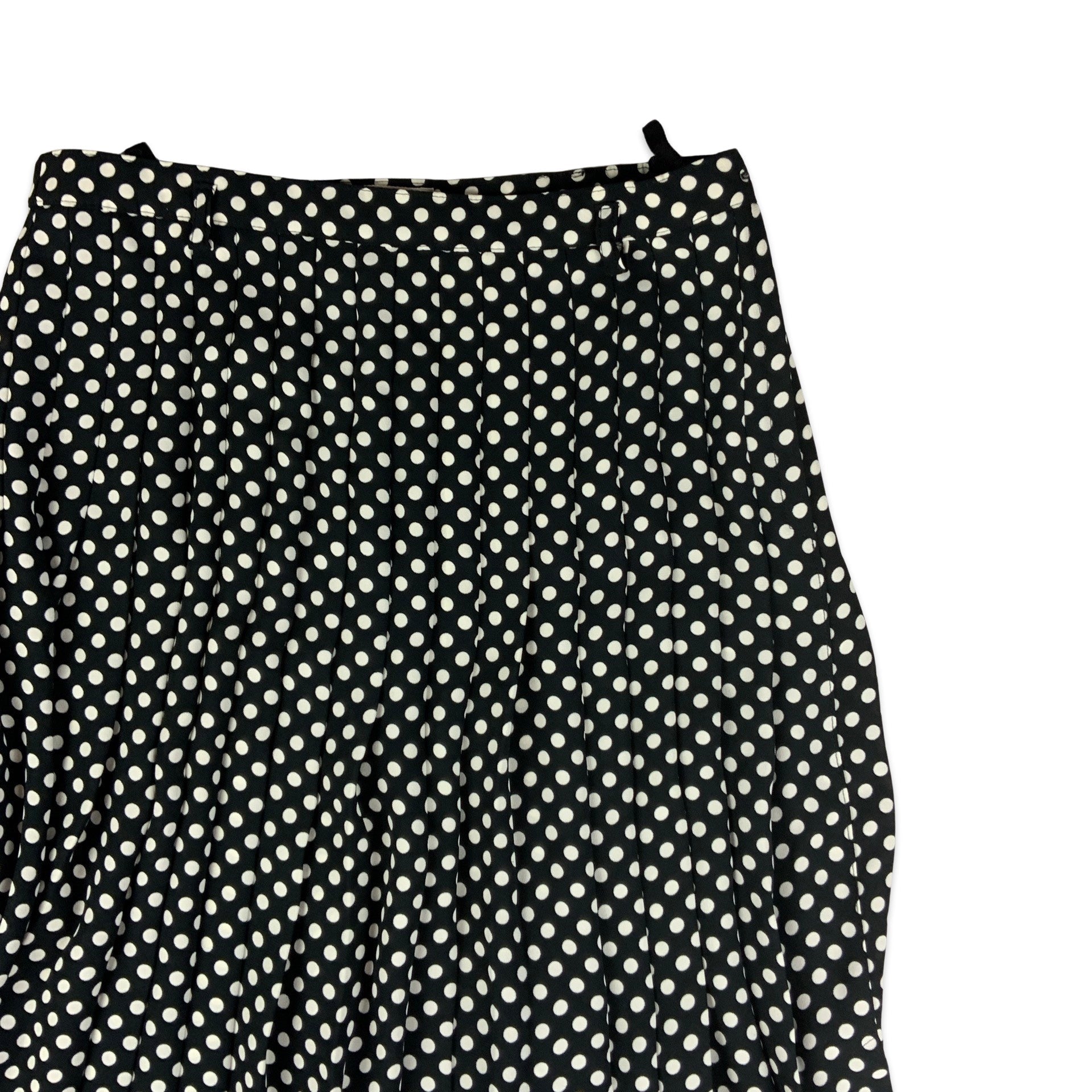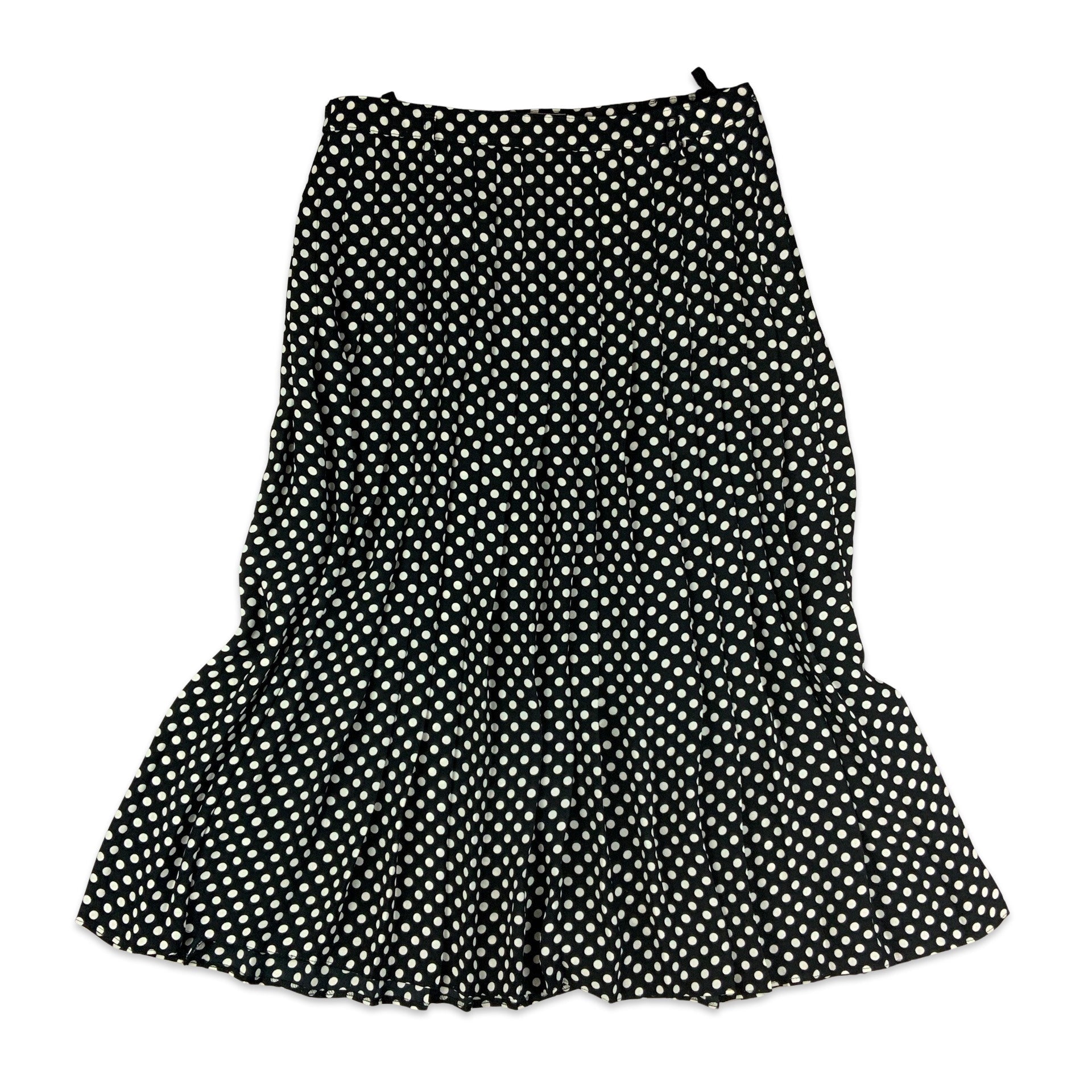 Vintage Bardehle black and white polka dot print pleated midi skirt with zip fixture.
