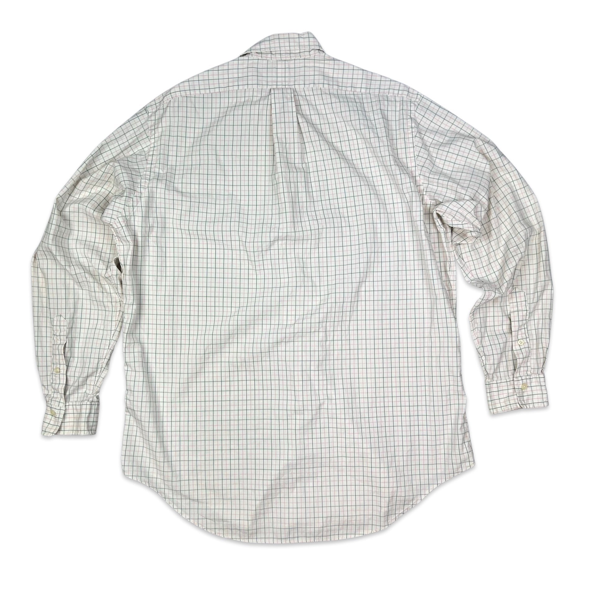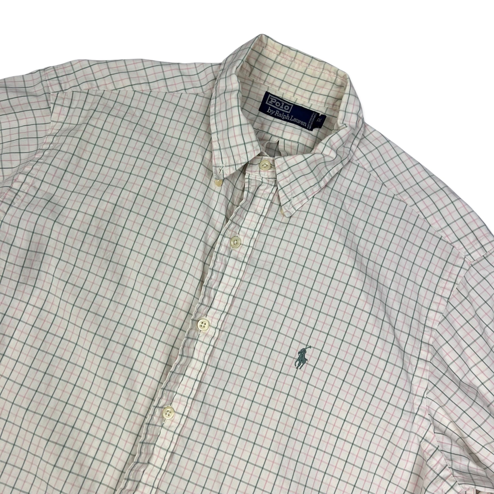 Vintage Polo by Ralph Lauren long sleeve button-up checked shirt in white, green, and pink.