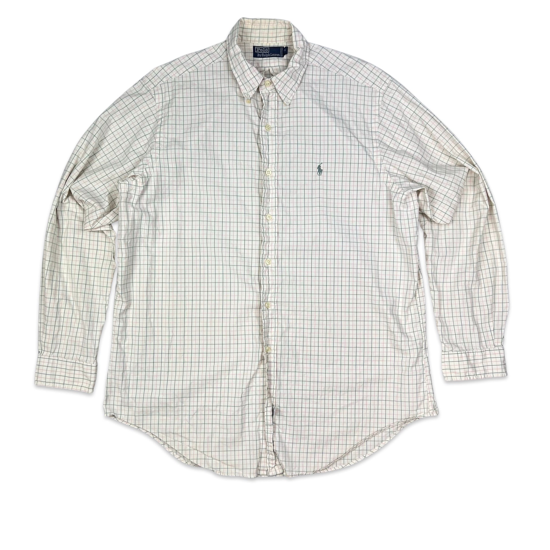 Vintage Polo Ralph Lauren White Green & Pink Checked Shirt XL XXL