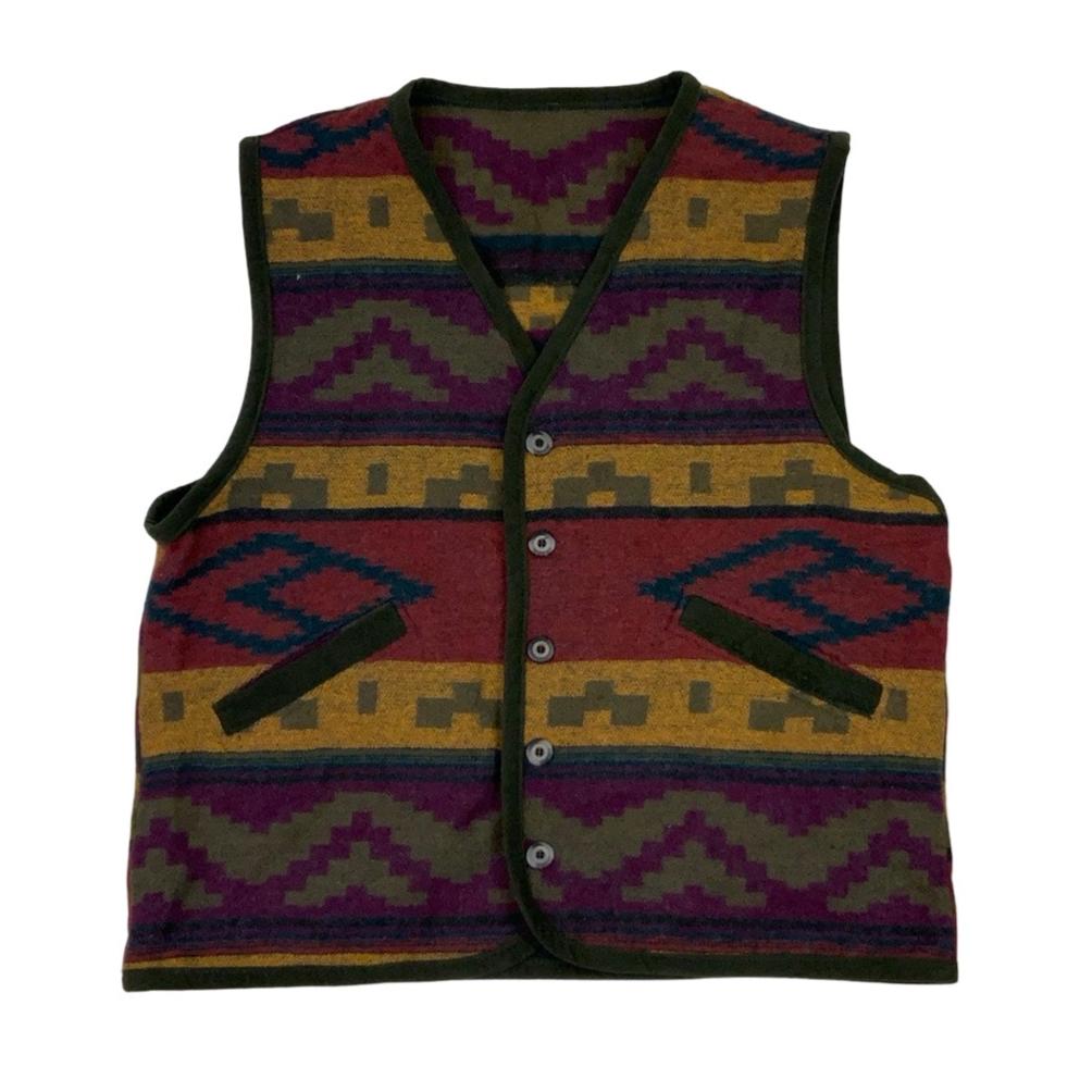 Vintage Purple Red Yellow Green Aztek Wool Waistcoat L 14 16 18