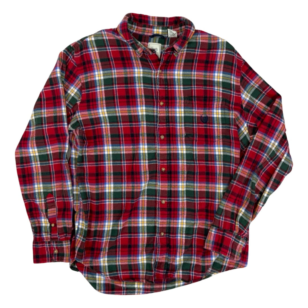 Vintage Chaps button-down flannel shirt in red and green plaid.