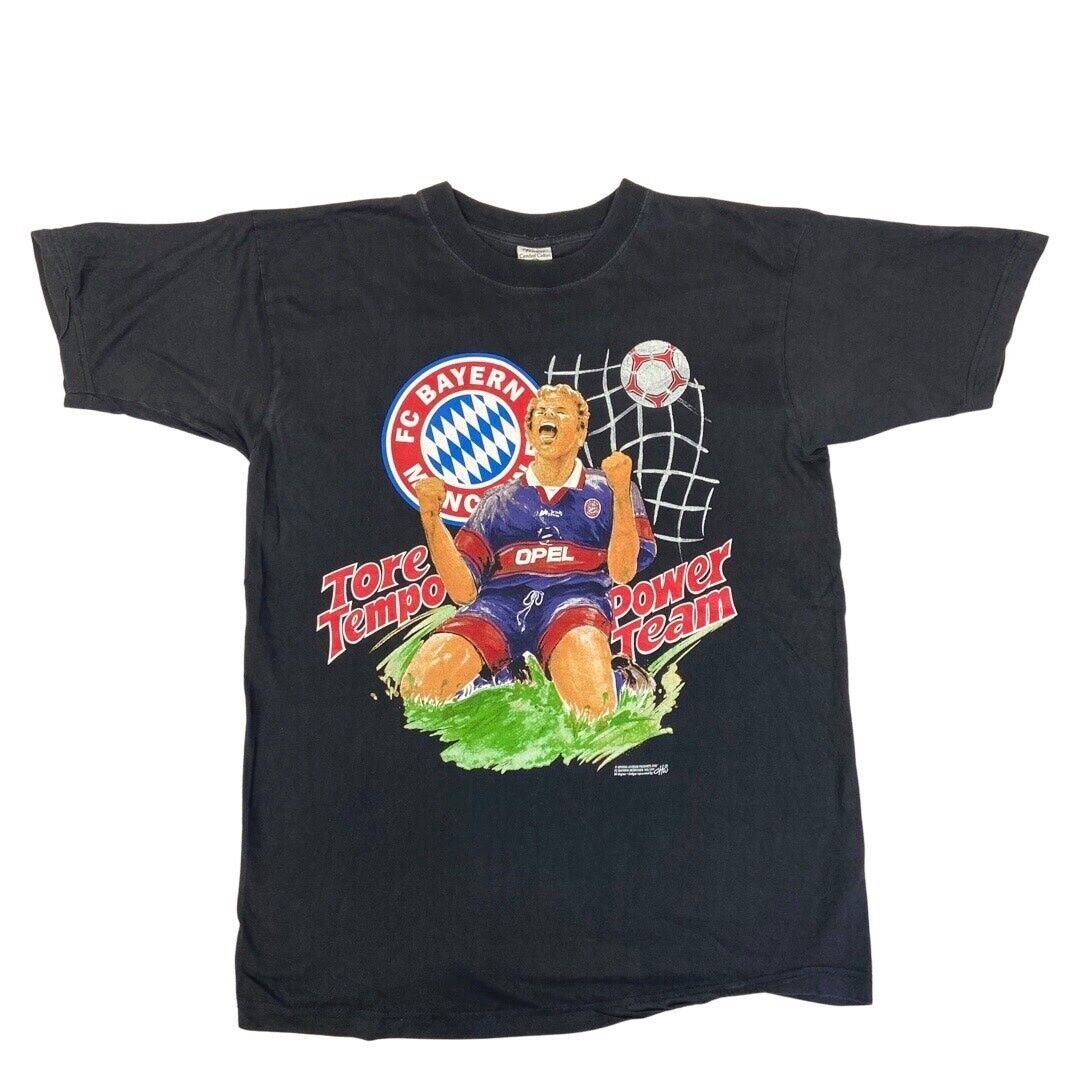 Vintage Rare 1997 Black Bayern Munich Graphic Football Tee T-shirt M