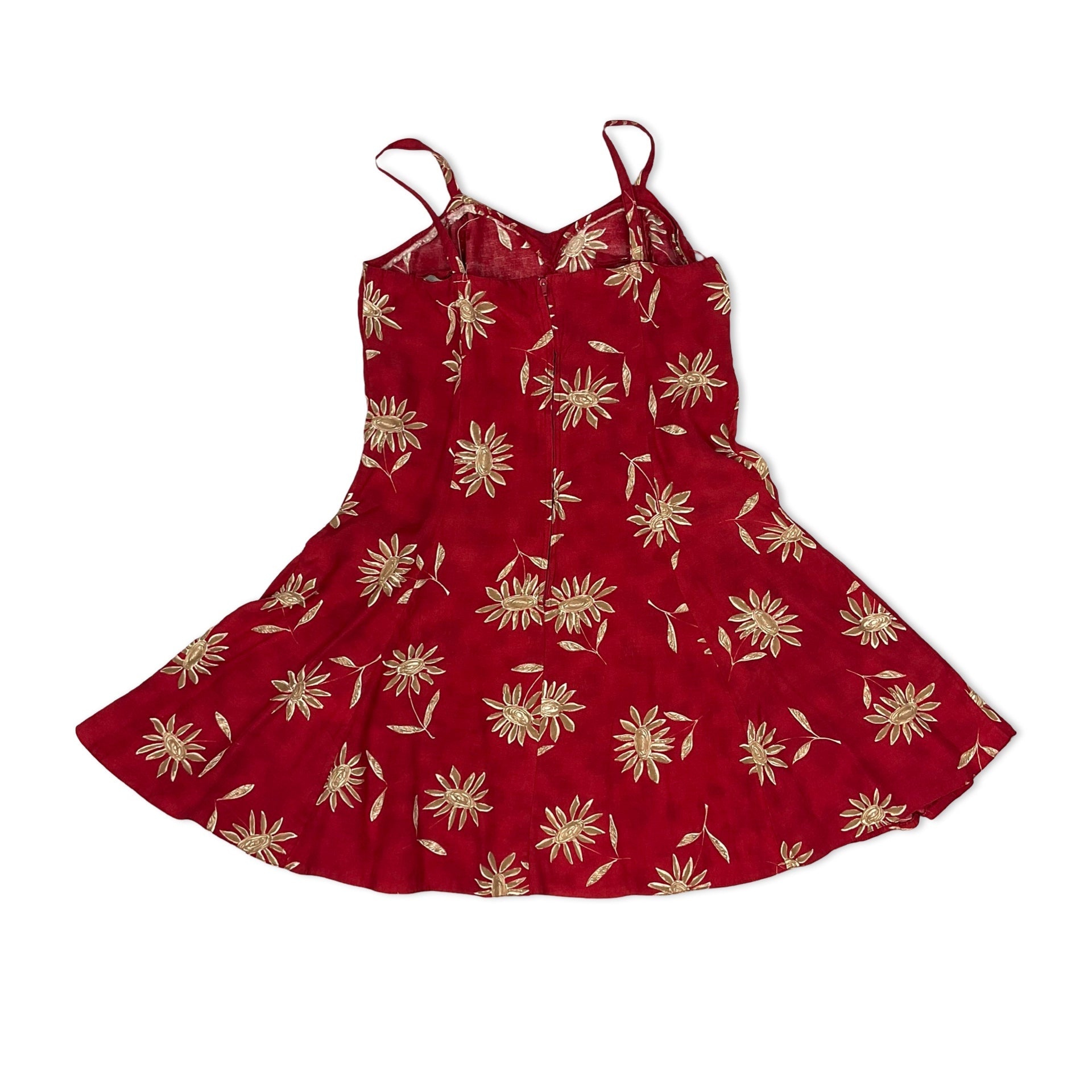 Women’s vintage summer dress. Red, brown & white floral print. Back zip fastening.