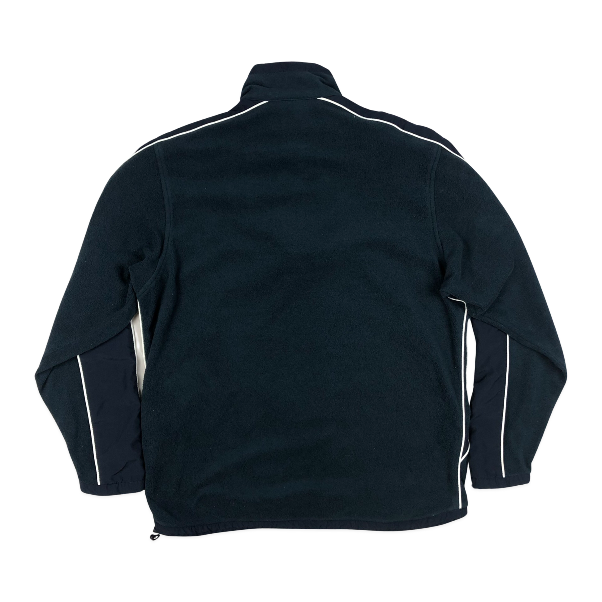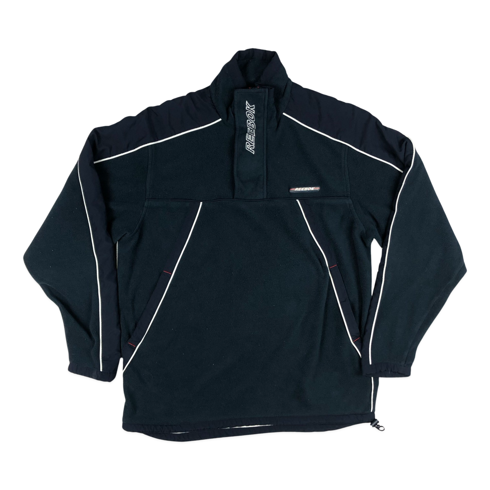 Vintage navy Reebok fleece with 1/4-zip down front and toggle cinchable waistline hem.